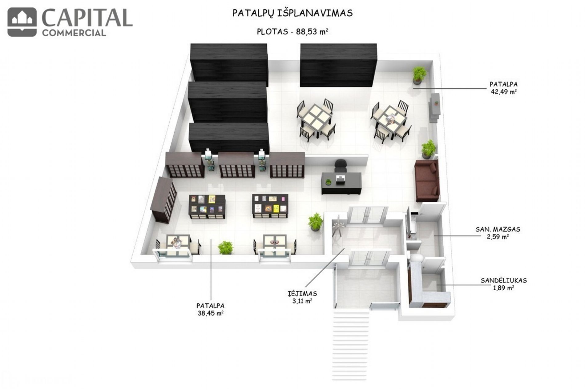 - Patalpos lengai pasiekiamos viešuoju transportu. Geras matomumas nuo autobusų žiedo, greitųjų autobusų ir troleibusų stotelės Visus naujausius CAPITAL nekilnojamojo turto skelbimus rasite mūsų internetiniame puslapyje www.capital.lt. Kviečiame apsilankyti!