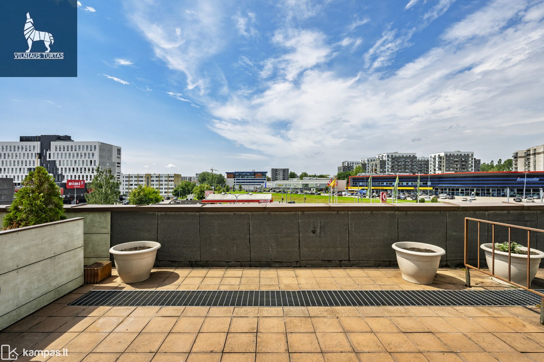 Parduodamos šiuolaikiškos administracinės patalpos su erdvia 24,59 m² terasa, esančios trečiame aukšte.