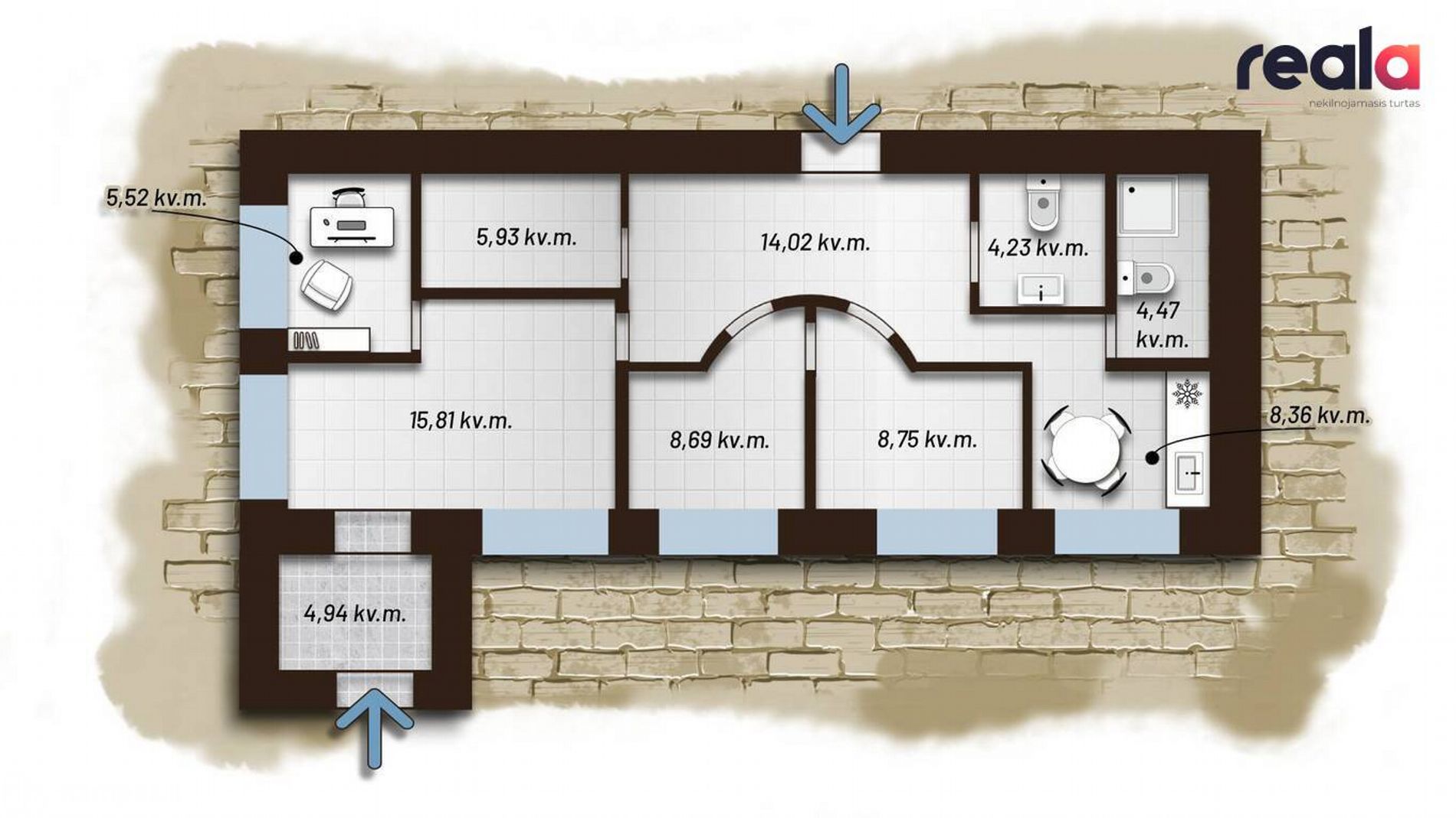 Patalpos yra 1 aukšte (iš 1), bendras plotas – 82,45 m², todėl ši vieta – puikus pasirinkimas tiek biurui, tiek įvairiai paslaugų ar prekybos veiklai. Pastatas mūrinis, 2022 m. atliktas kapitalinis atnaujinimas, tad visos inžinerinės sistemos šiuolaikiškos ir patikimos. Įrengtas ekonomiškas aeroterminis šildymas užtikrina malonų mikroklimatą bei taupius šildymo kaštus. Kokybiški plastikiniai langai, gera garso ir šilumos izoliacija – Jūsų ir klientų komfortui visus metus.
