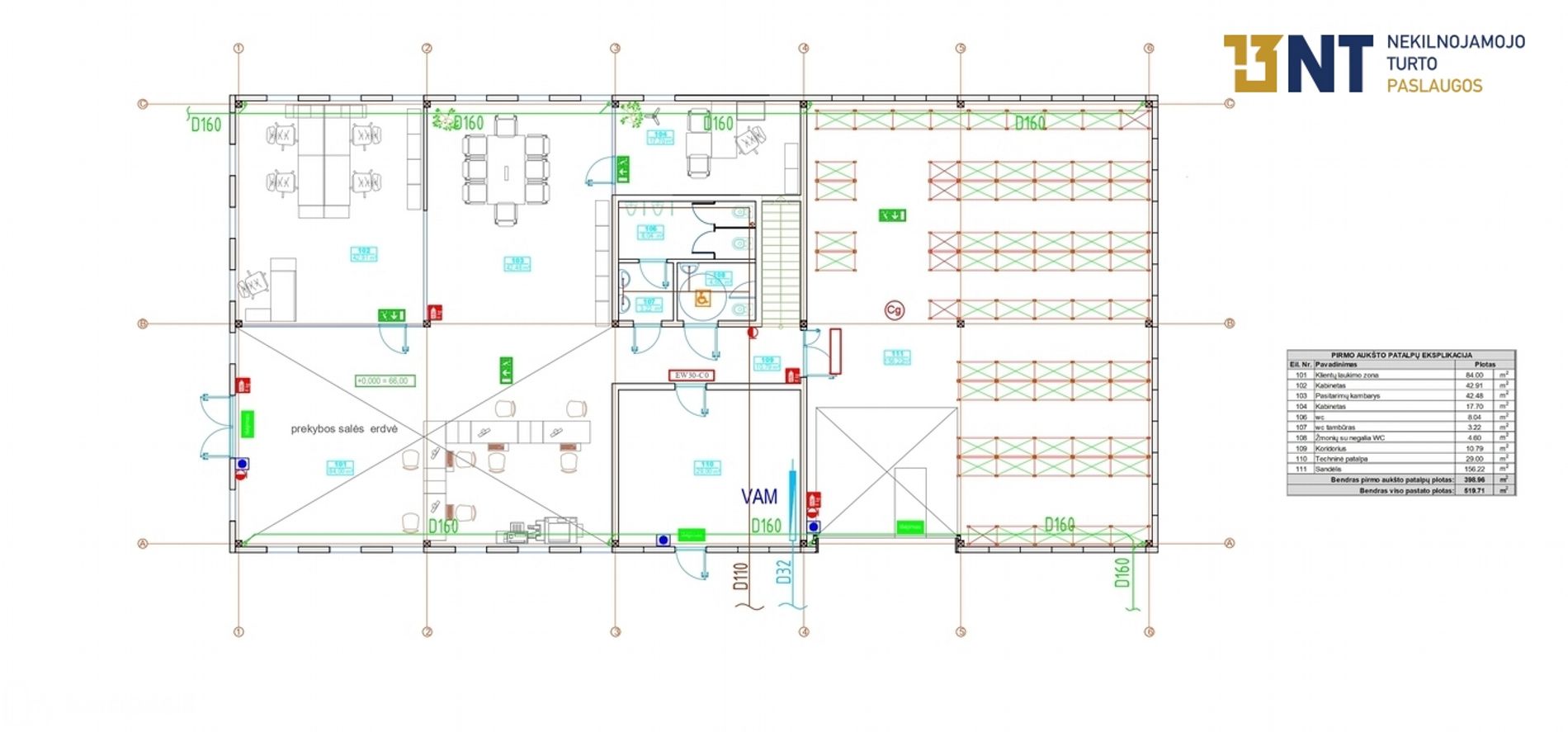 • 1 A. – 398,96 kv. m, sandėliavimo-prekybos patalpos