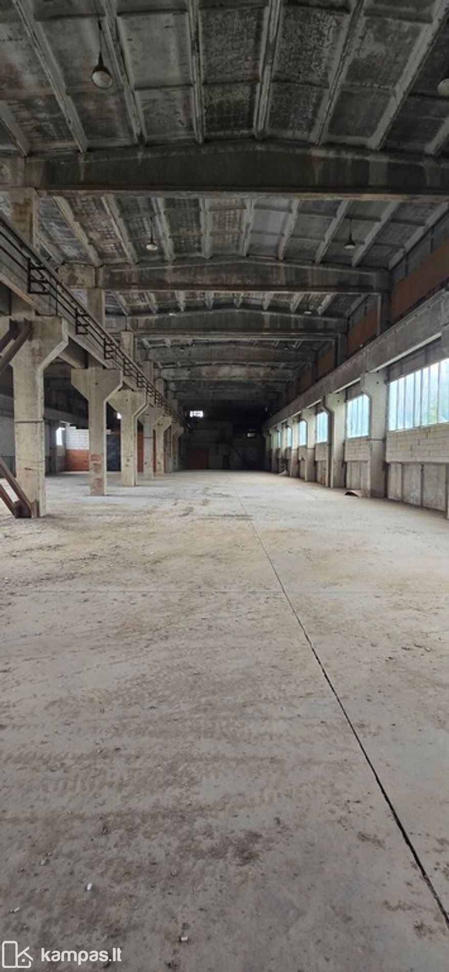 Dideli angarai su telferiais, aukštomis lubomis.