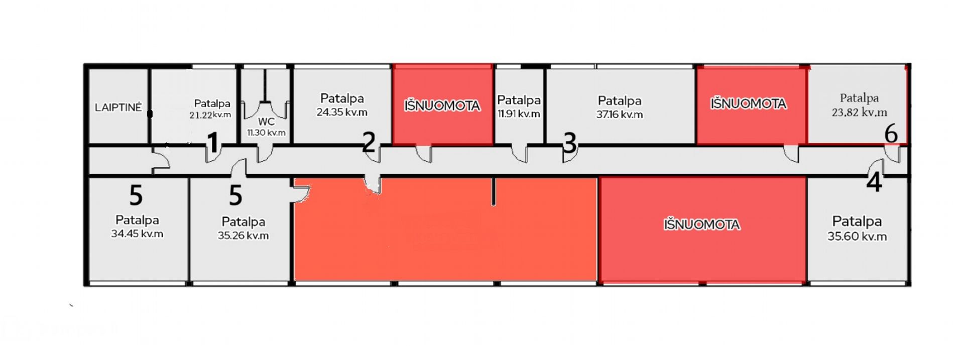 Patalpa Nr. 5 - 69.71 kv/m. Susideda iš dviejų zonų. Nuomos kaina 400 eur/mėn.