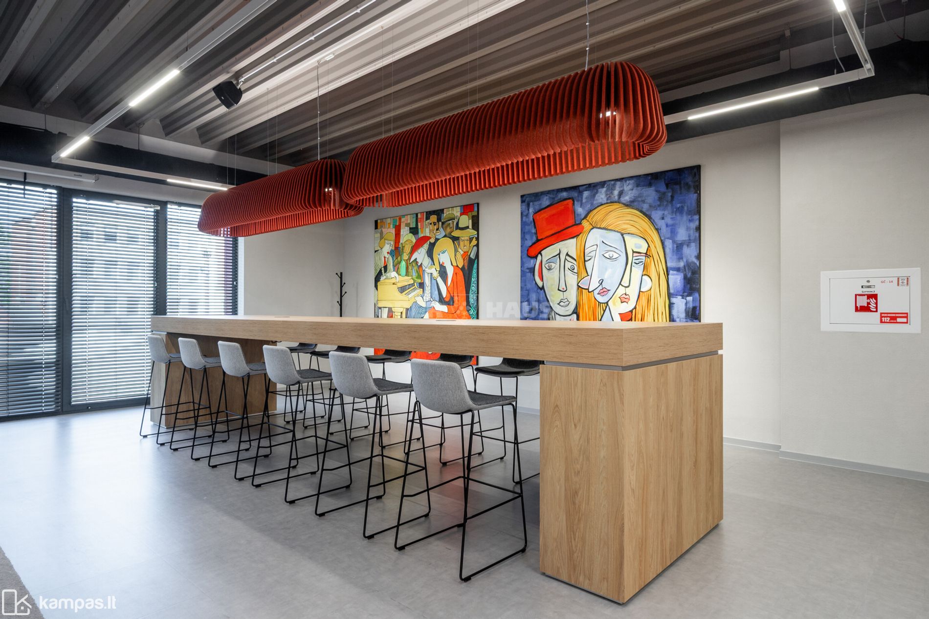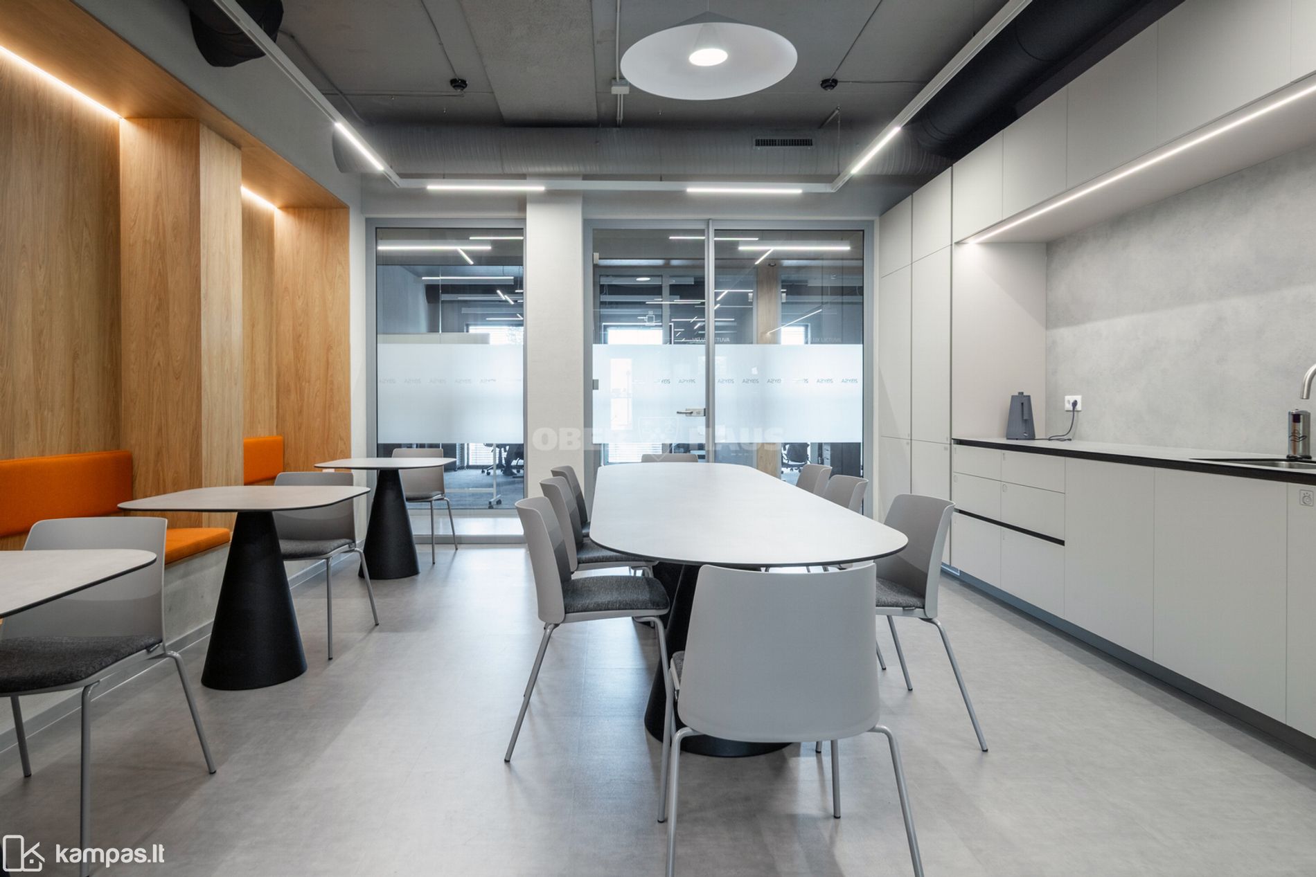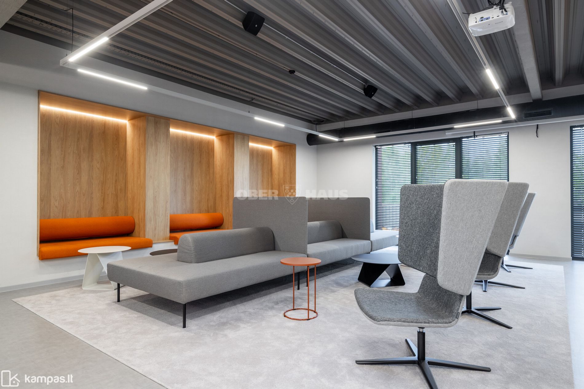 - Biure vyrauja "open space" išplanavimas, susitikimų kambariai, "call box", atskiri kabinetai, virtuvė, WC zonos, konferencijų salės ir kt.