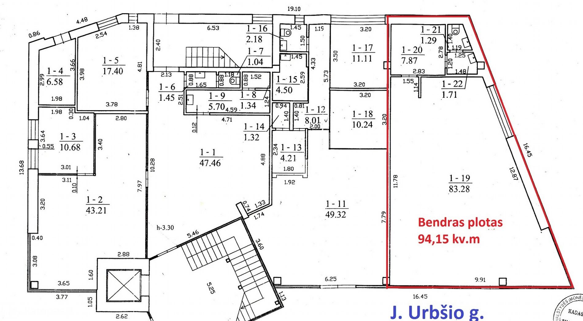 Išnuomojamos komercinės patalpos, esančios J. Urbšio g. 3, Panevėžyje. Tvarkingos, įrengtos 94,15 kv. m ploto patalpos yra pastato pirmame aukšte. Įėjimas į šias patalpas yra iš J. Urbšio g. gatvės pusės.