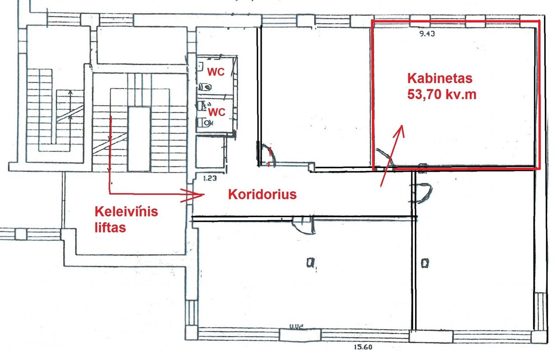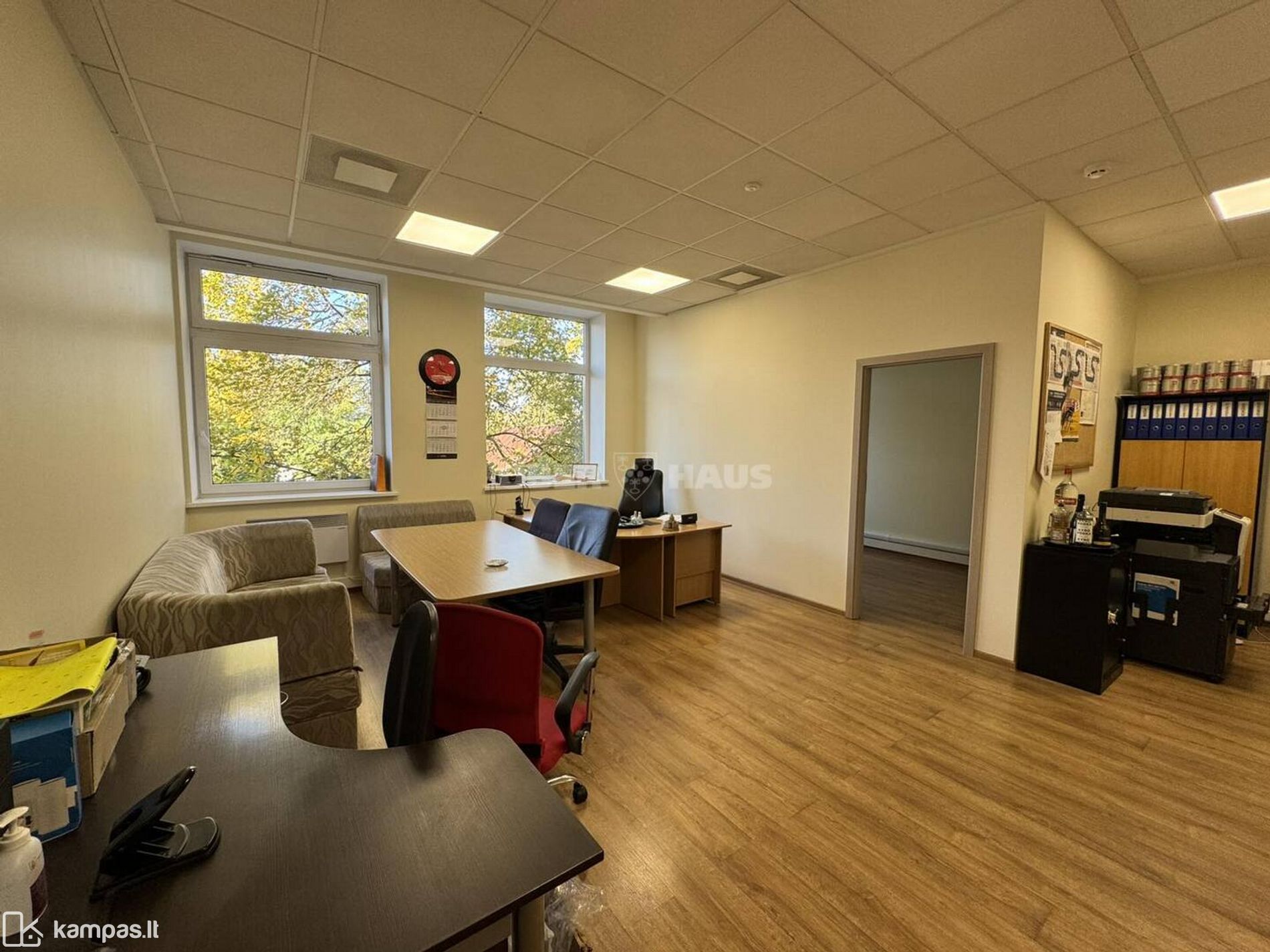 Tvarkingos, įrengtos 53,70 kv.m ploto patalpos yra pastato antrame aukšte, gerai matomos nuo J. Urbšio gatvės. Kabinetas yra naujai įrengtas, šildymas elektra, yra kondicionavimo, apsaugos sistemos, atskira elektros apskaita. Bendrose patalpose yra du tualetai, pagalbinės patalpos.