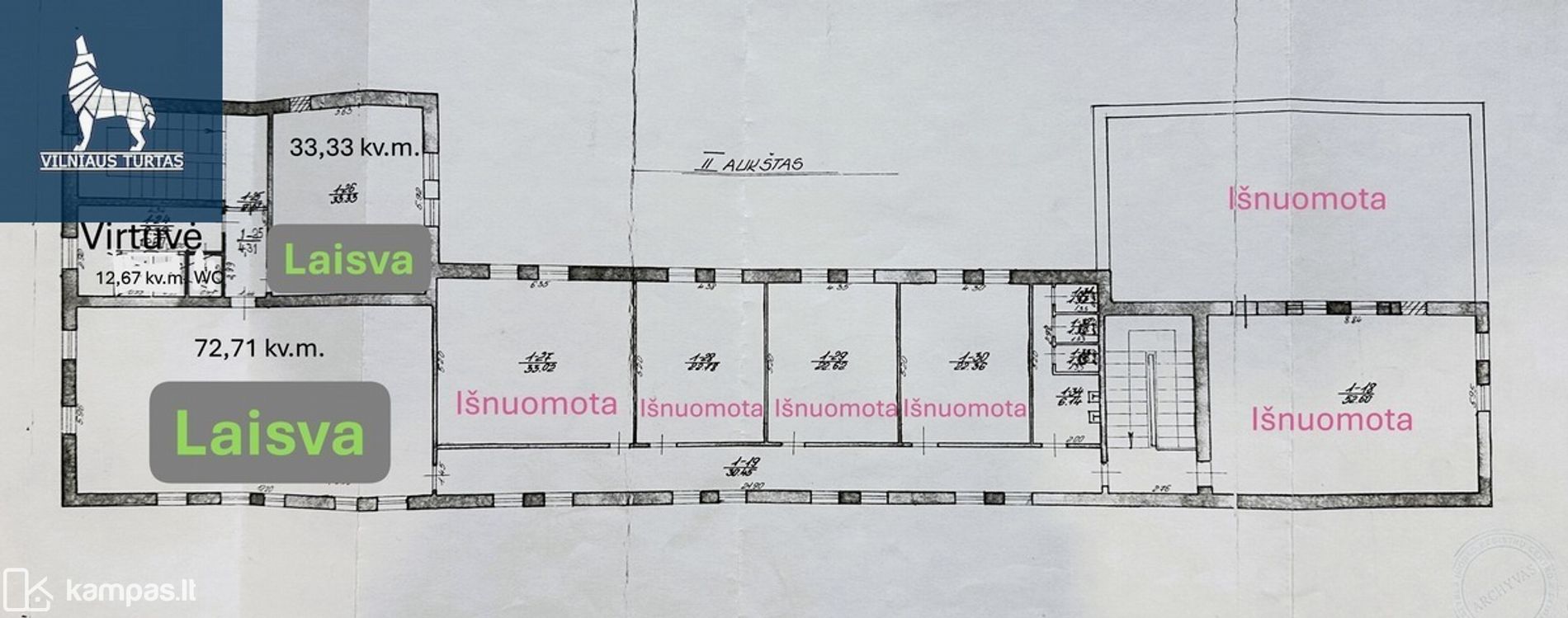 Esant poreikiui, galime pasiūlyti greta esančias, 72,71kv.m patalpas: kaina: 400 eur
