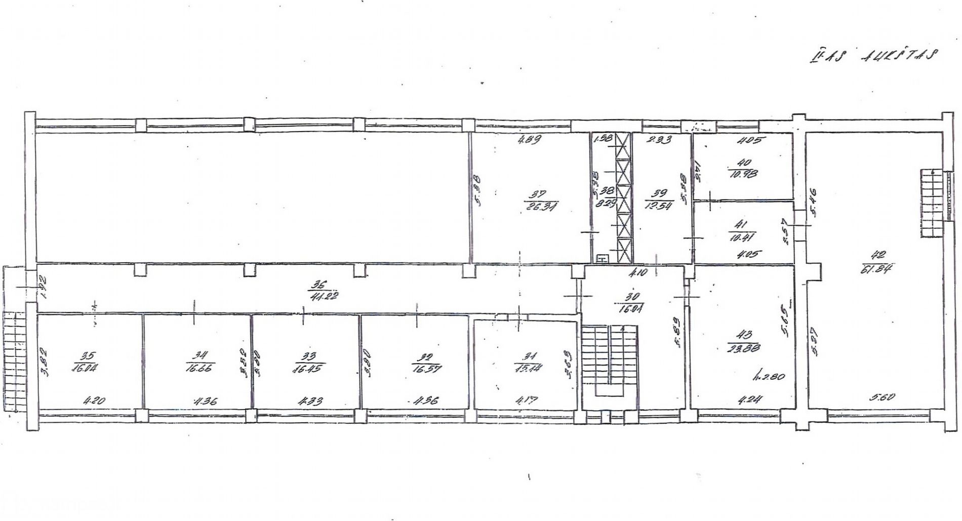 • Dalis pirmo aukšto patalpų ir antras aukštas neįrengti.