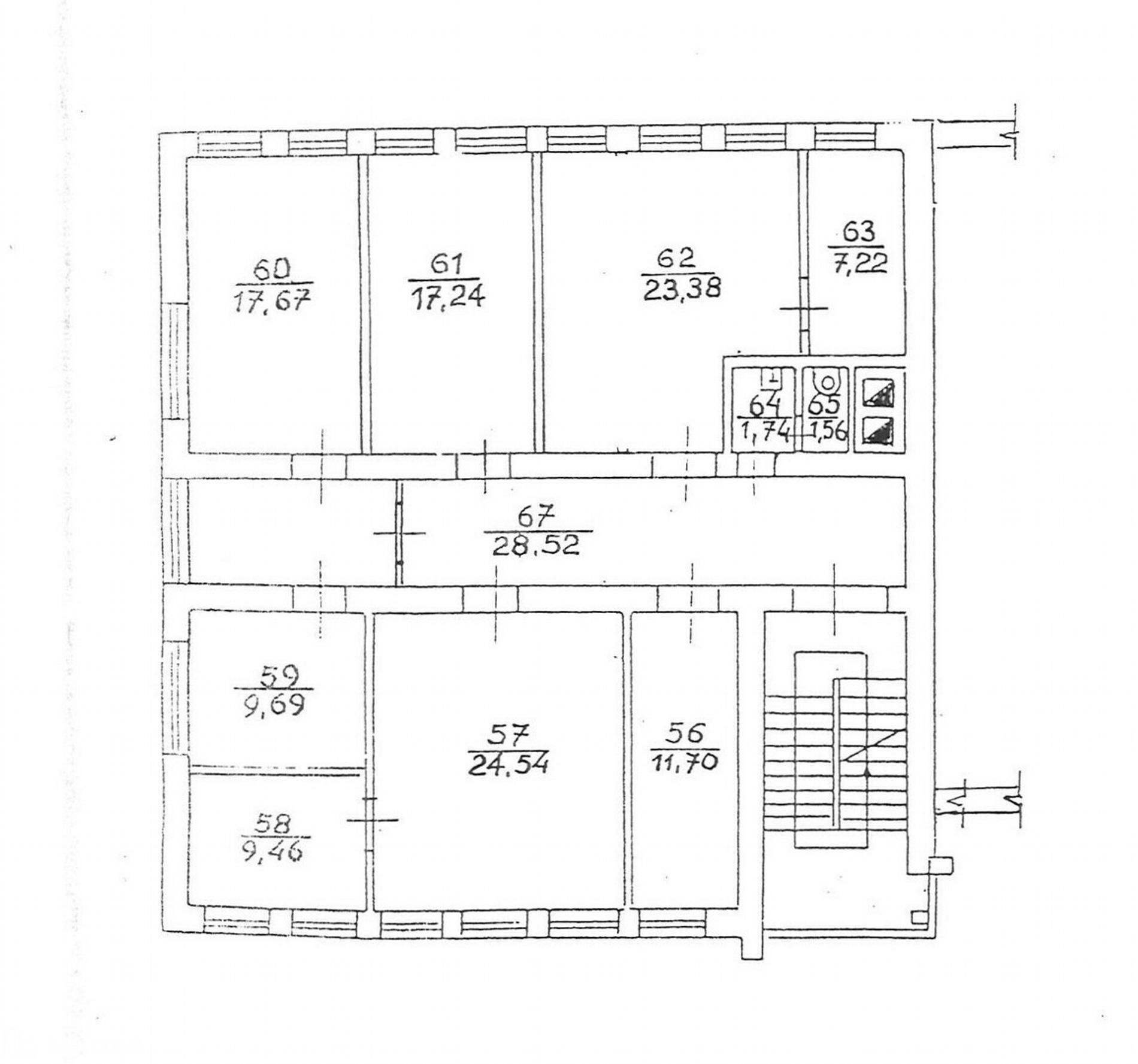 • Kabinetų plotai nuo 9,96 m² iki 24,54 m².
