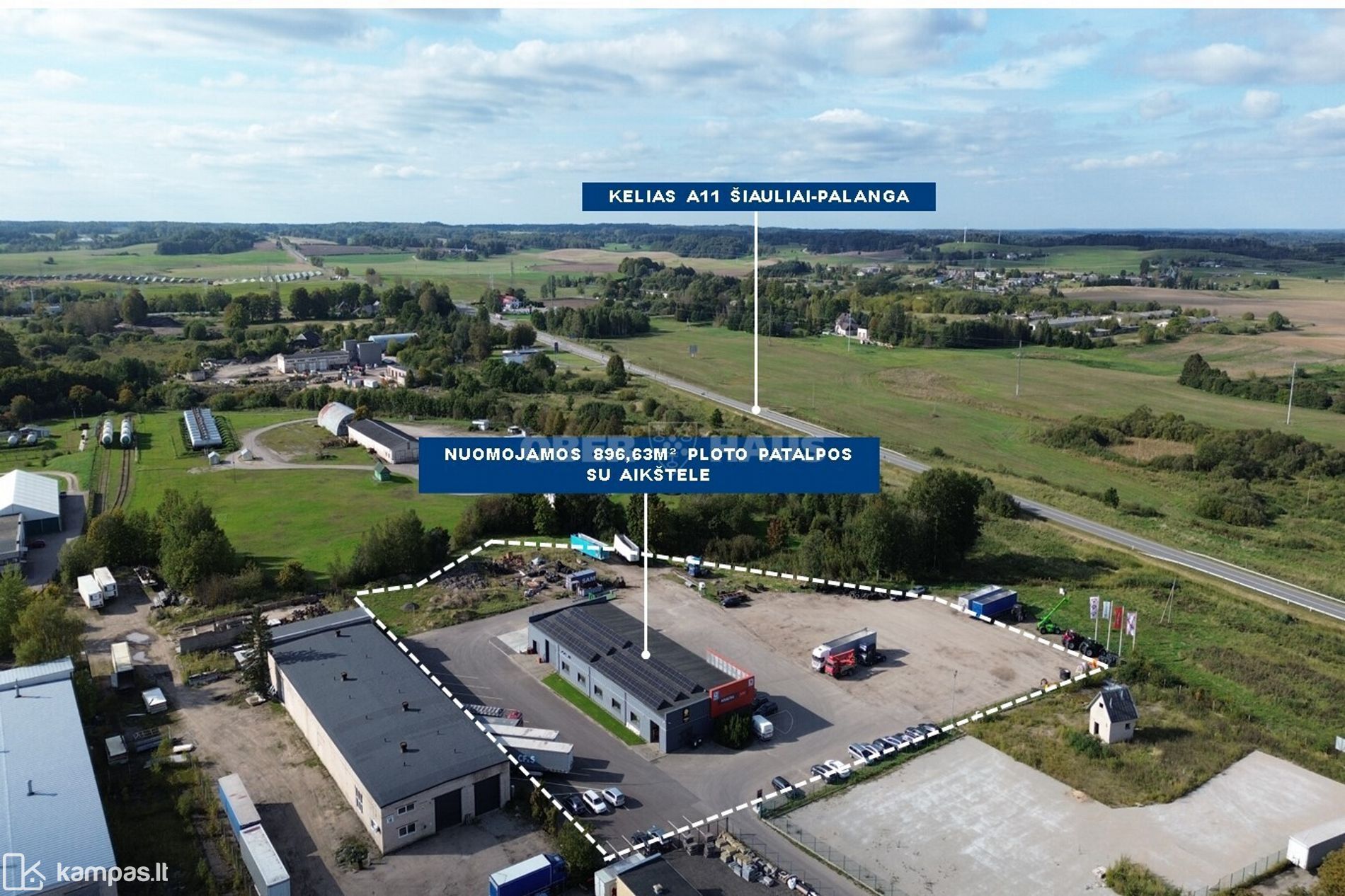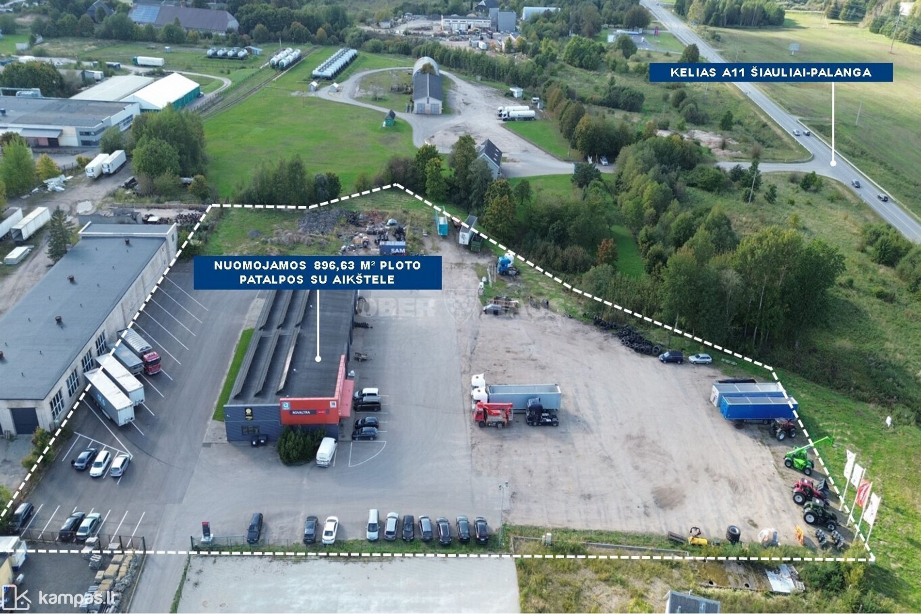 Nuomojamos patalpos su erdve aikštele strategiškai geroje vietoje, šalia judraus A 11 kelio. Patalpose iki šiol veikia sunkvežimių ir traktorių