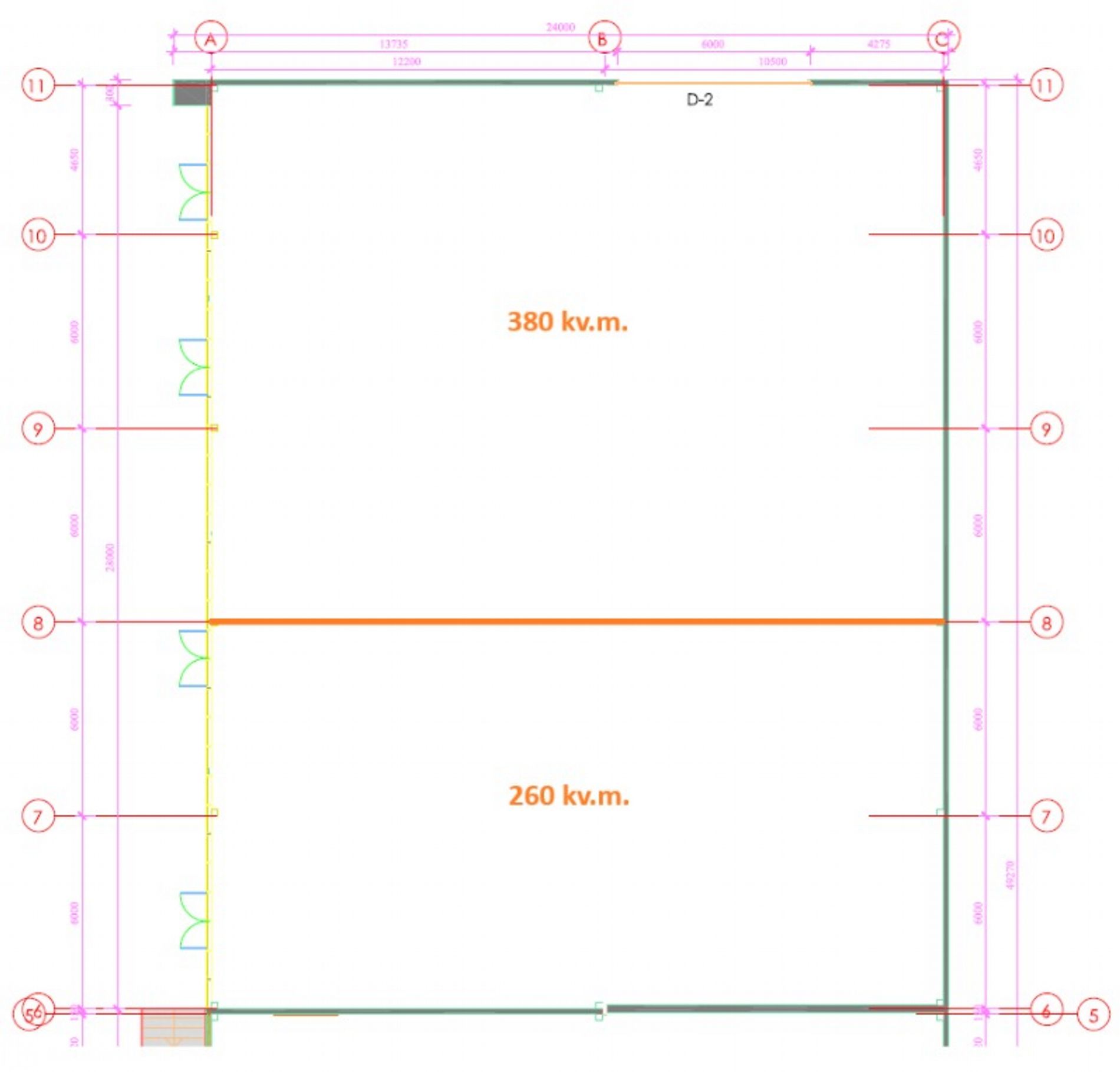 640 KV.M. PATALPA GALI BŪTI SUSKIRSTYTA Į MAŽESNIUS PLOTUS PAGAL POREIKĮ 260 KV.M ir 380 KV.M.
