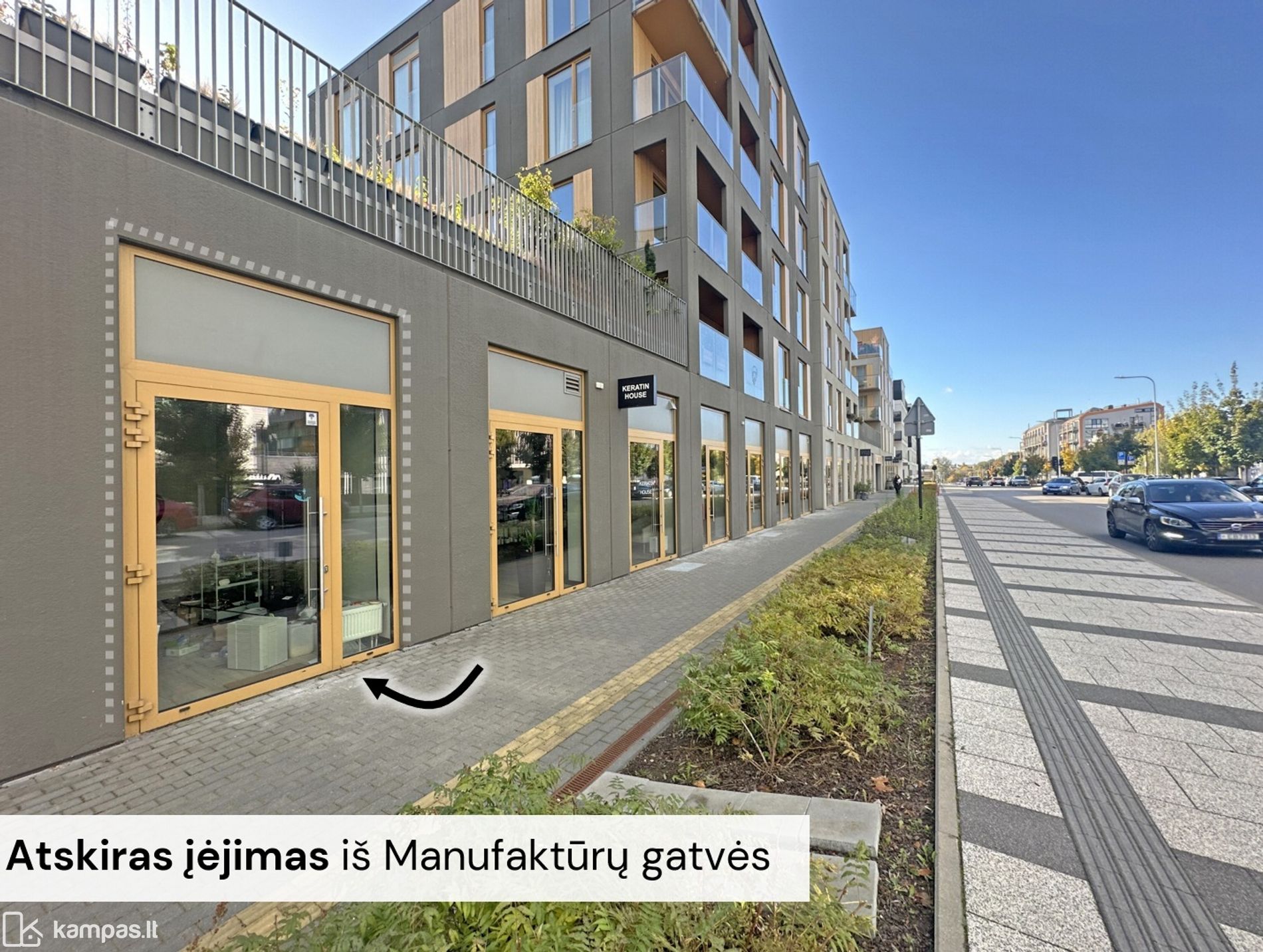 • Yra ATSKIRAS ĮĖJIMAS (nuo Manufaktūrų gatvės)