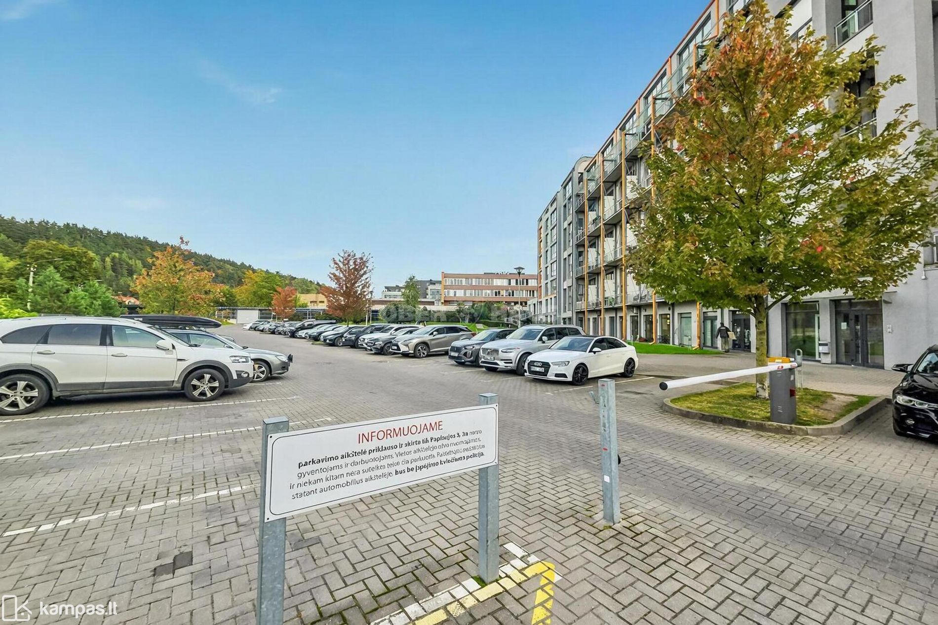 Patalpoms priskiriama 1 nemokama parkingo vieta priešais patalpas esančioje uždaroje automobilių aikštelėje.
