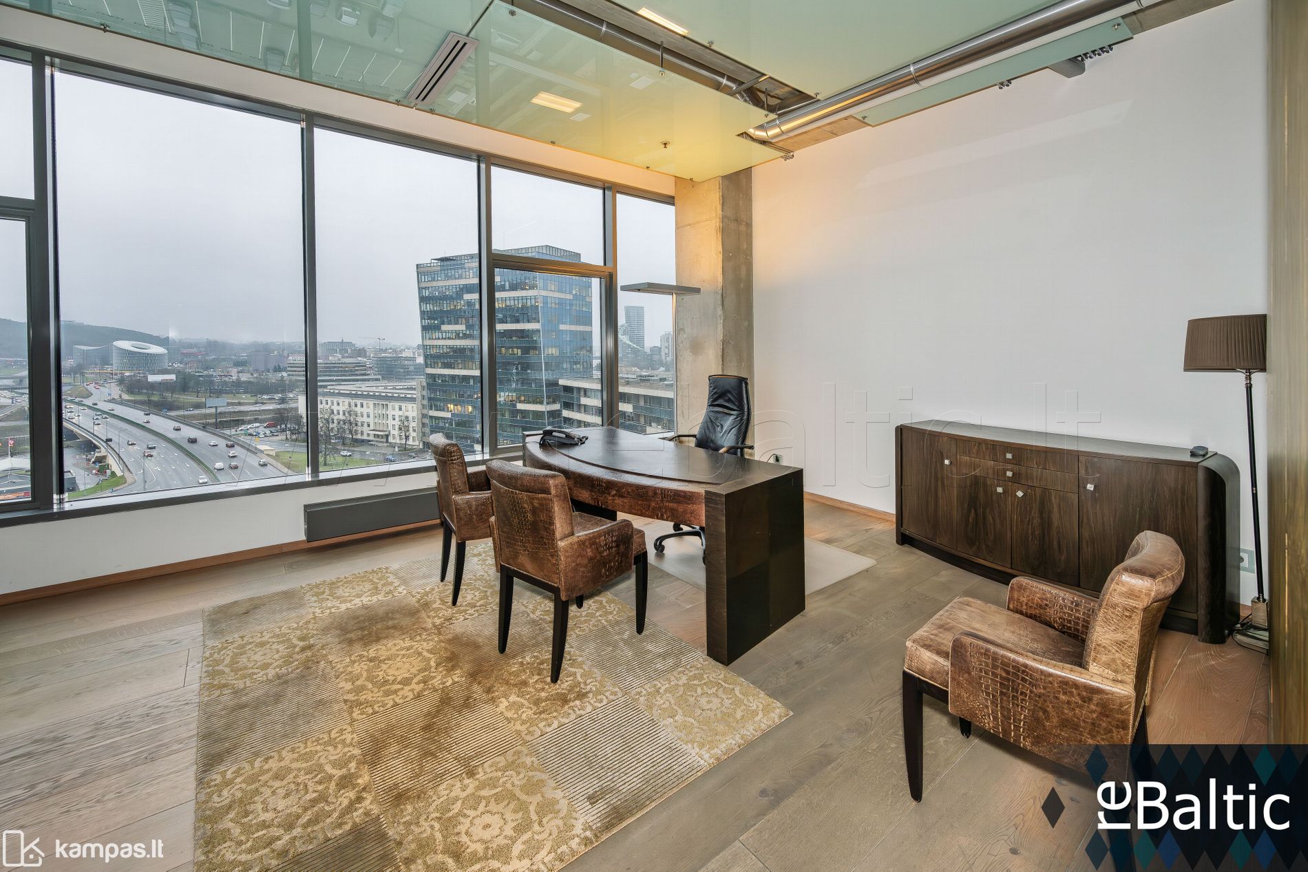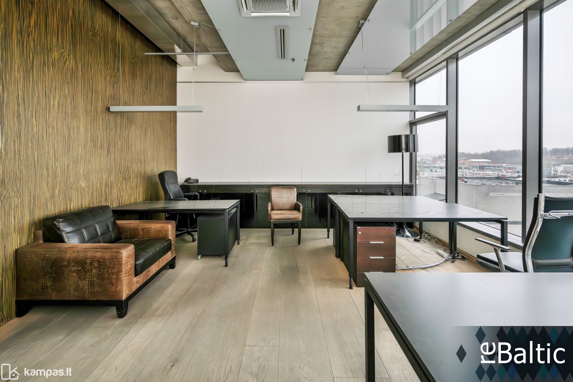 - Itin aukštos klasės įrengimas. Medžio lukšto sienų apdaila. Lenkto stiklo pertvara pagrindiniame 18+ vietų posėdžių ir susitikimų kambaryje. Vaizdai į miestą pro visus langus.