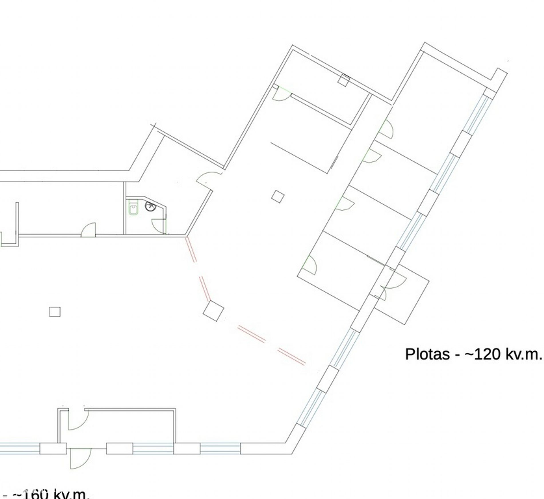 120 kv.m., tinkamos prekybinei - paslaugų - administracinei veiklai. Naugarduko g, / Smolensko g. kampas Naujamiestis. Geras matomumas nuo gatvės, galimybė pasikabinti reklamine iškaba. Atskiras įėjimas nuo Smolensko g. Kabinetinė sistema, 7 atskiros erdvės, gipso -stiklo pertvaros. Atskiras wc.