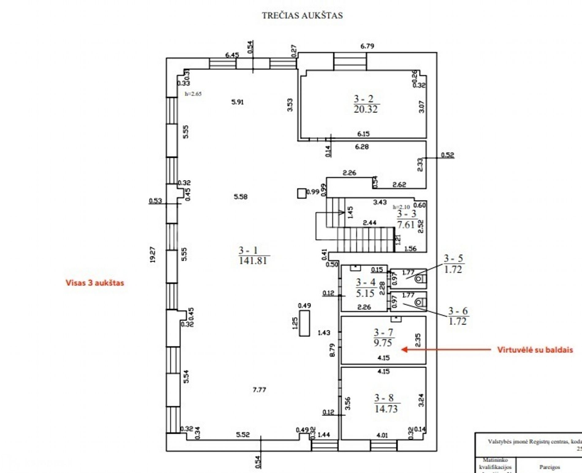 202,81 m² biuro ploto atskiros patalpos trečiame aukšte: