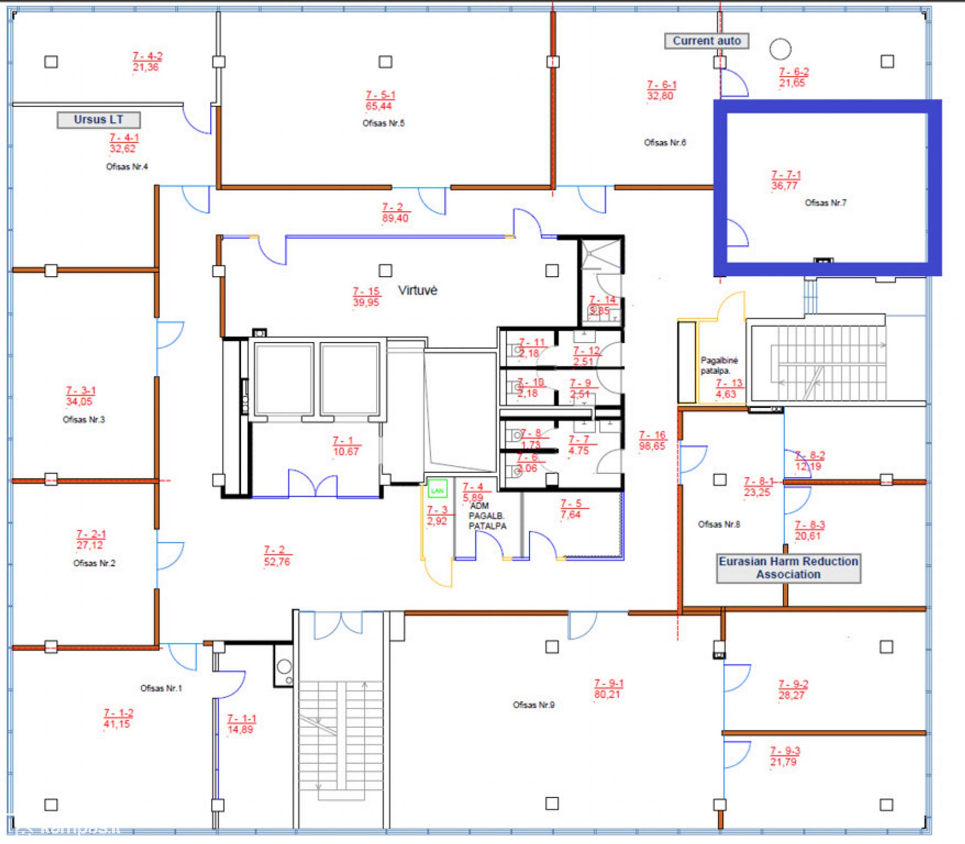 Patalpų plotas 36.77 kv.m. + 16.84 kv.m. add-on po 3 Eur/kv.m.