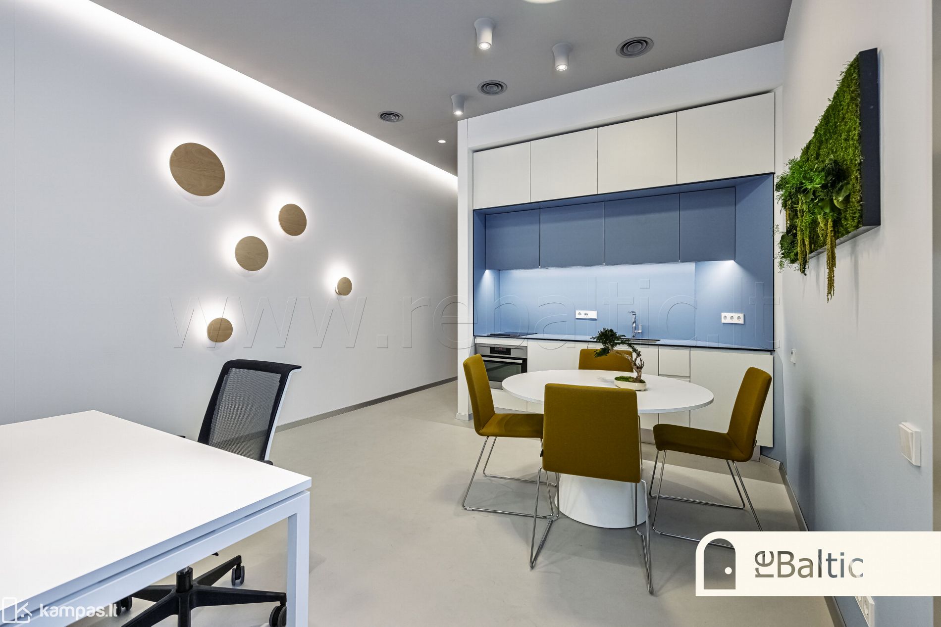 - Pagrindinė erdvė su virtuvės zona ir 2 atskiri kabinetai, 2 san. mazgai