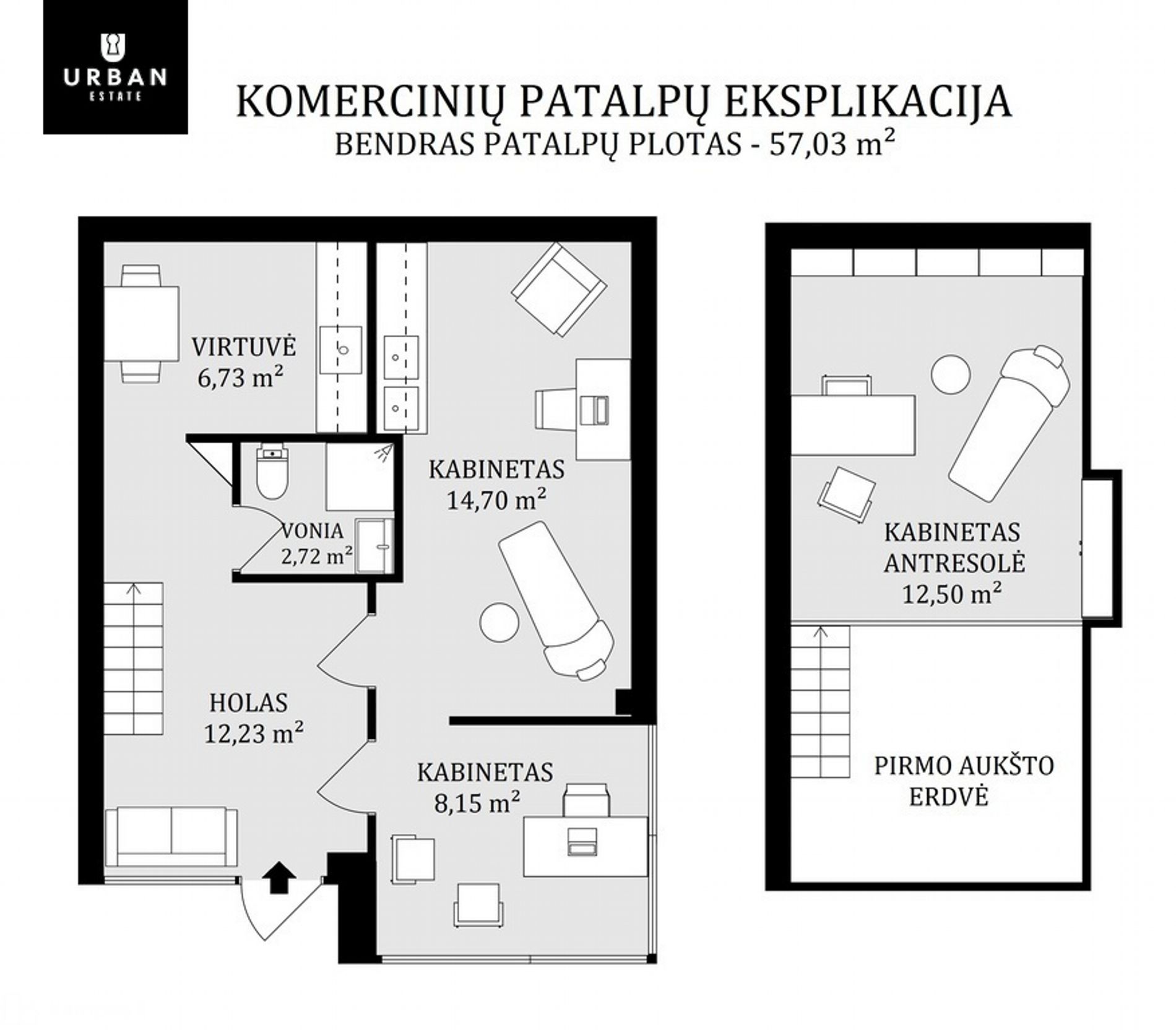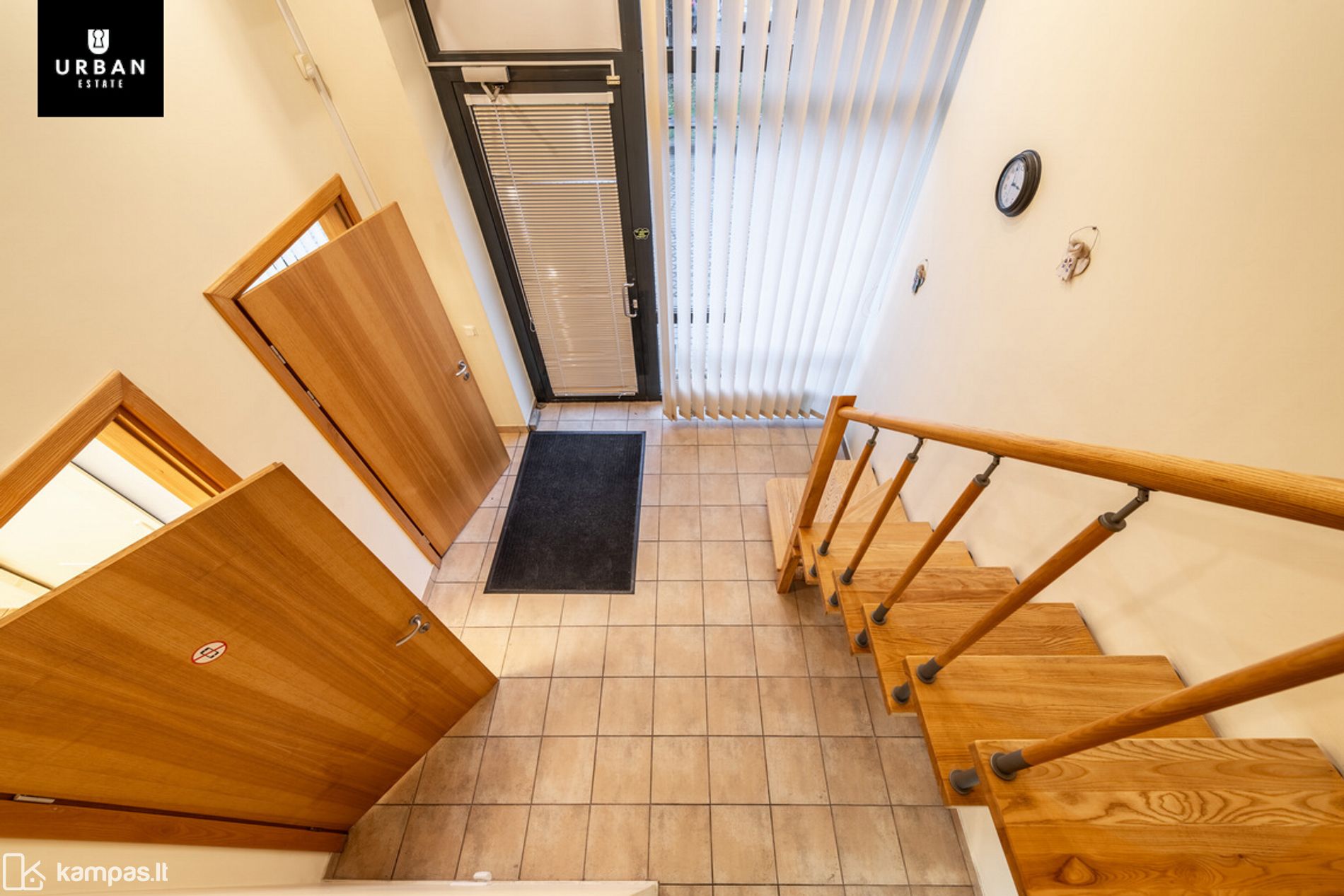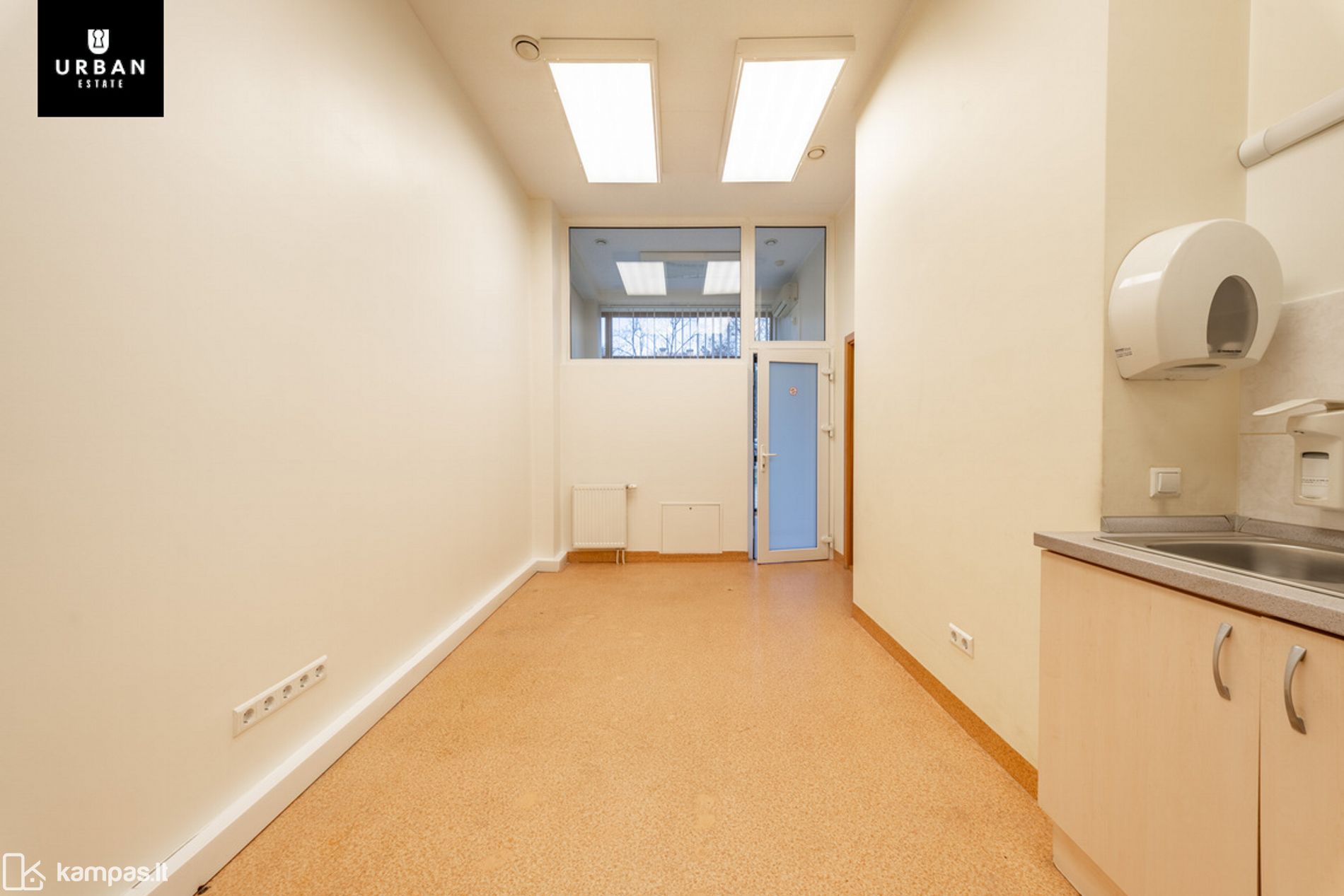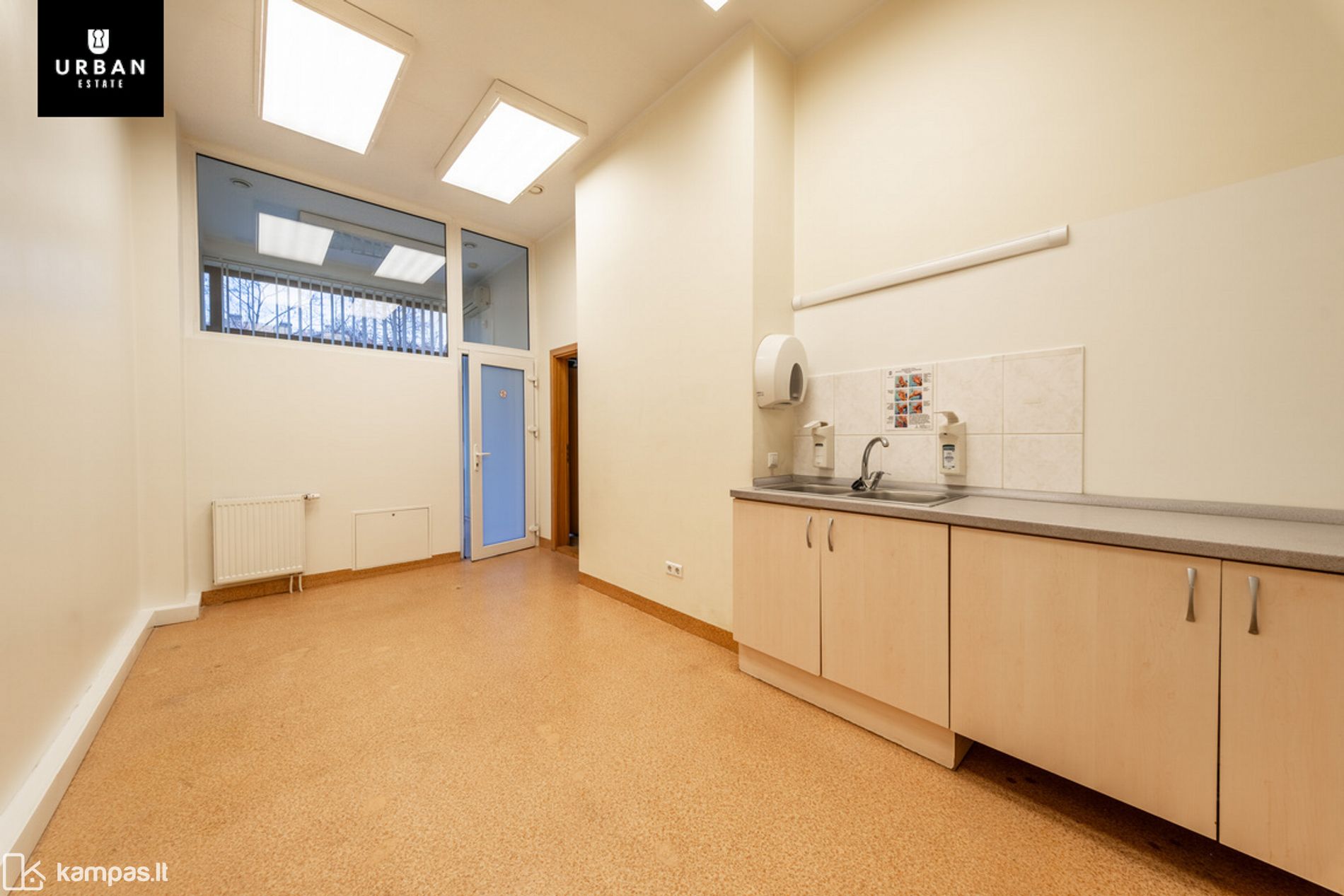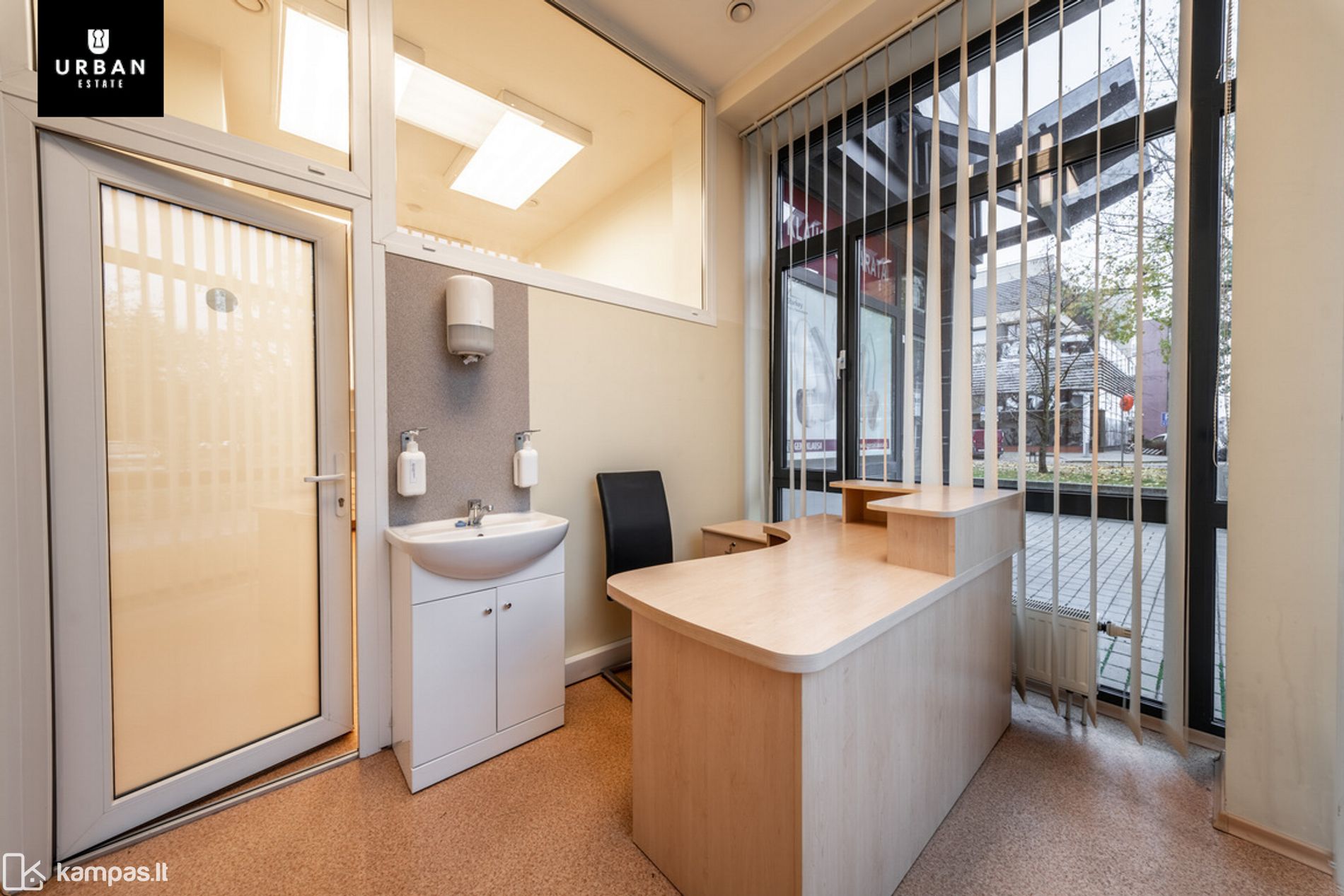 - Patalpos šviesios, vitrininiai langai orientuoti vakarine kryptimi.