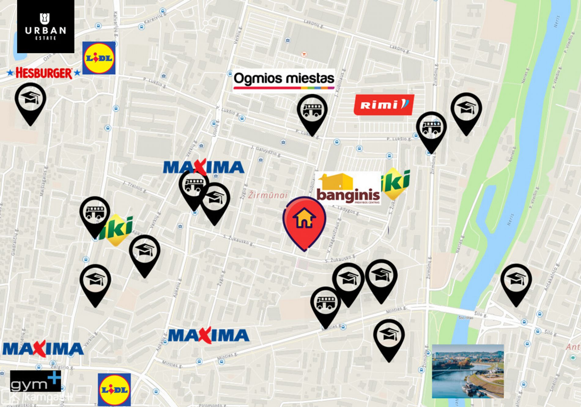 - Strategiškai patogi vieta mieste, gyvenamųjų daugiabučių pastatų kvartale, ir vos kelios minutės nuo miesto centro.