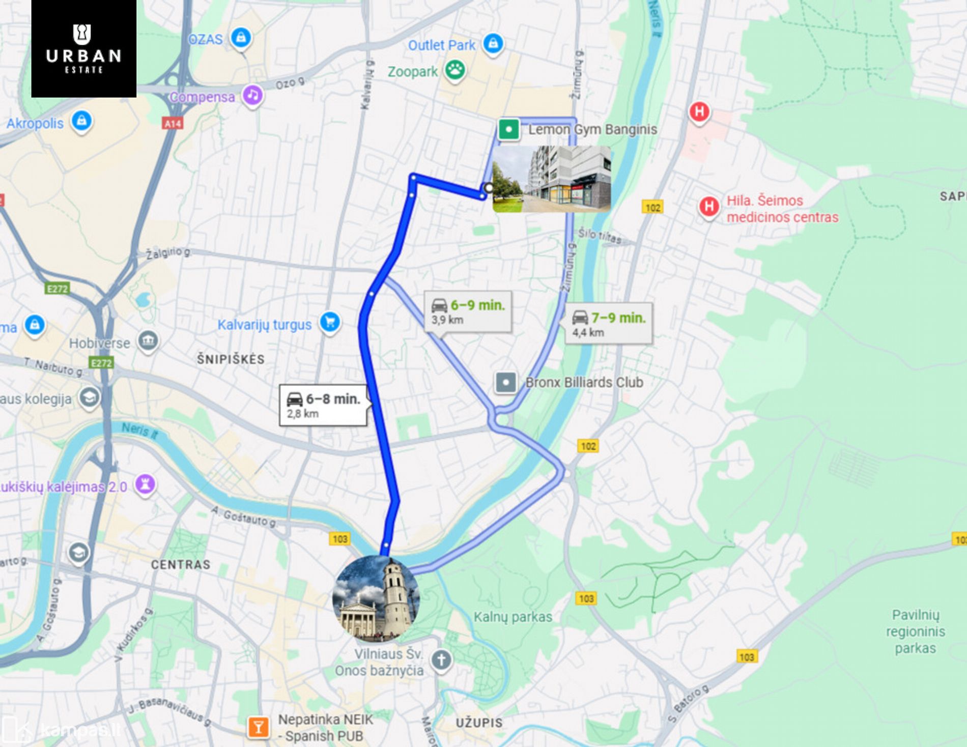 ~0.40 km iki prekybos centro "Maxima X";