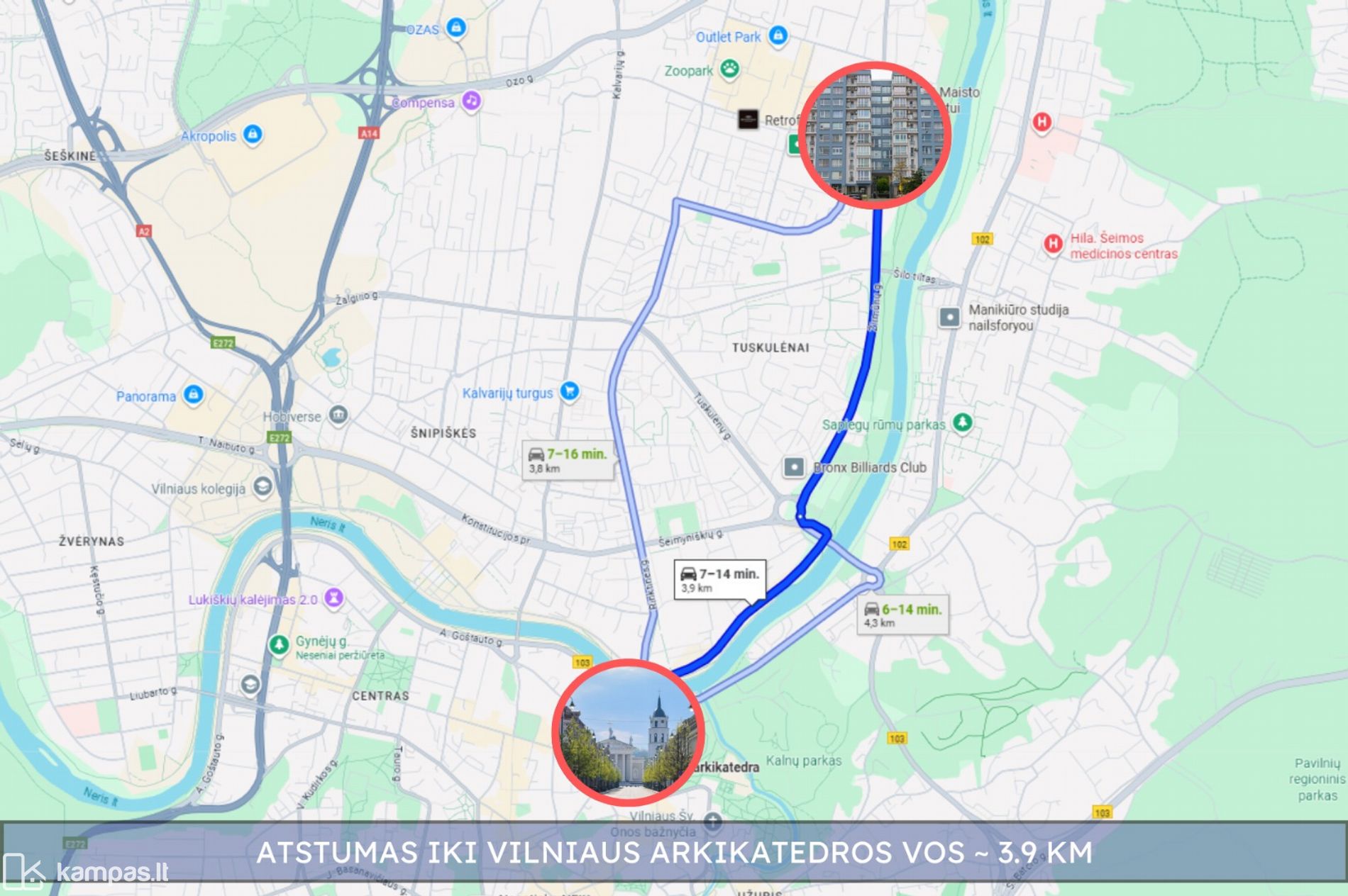 ~ 3.9 km iki Vilniaus arkikatedros aikštės ;