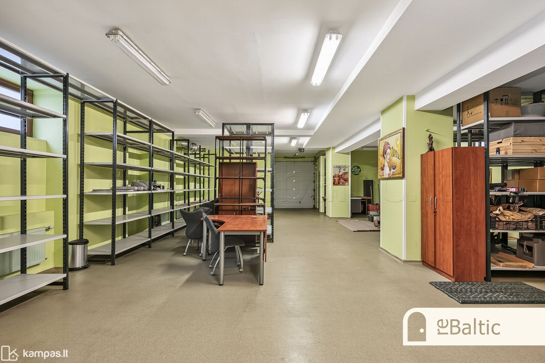 - Pirmame aukšte komercinės patalpos su įėjimu iš gatvės, sandėliavimo patalpos ir sandėliukas. Taip pat yra rūsys, į kurį patenkama iš komercinės patalpos.