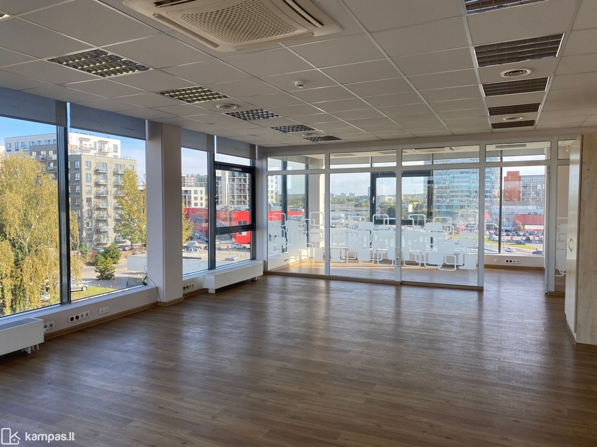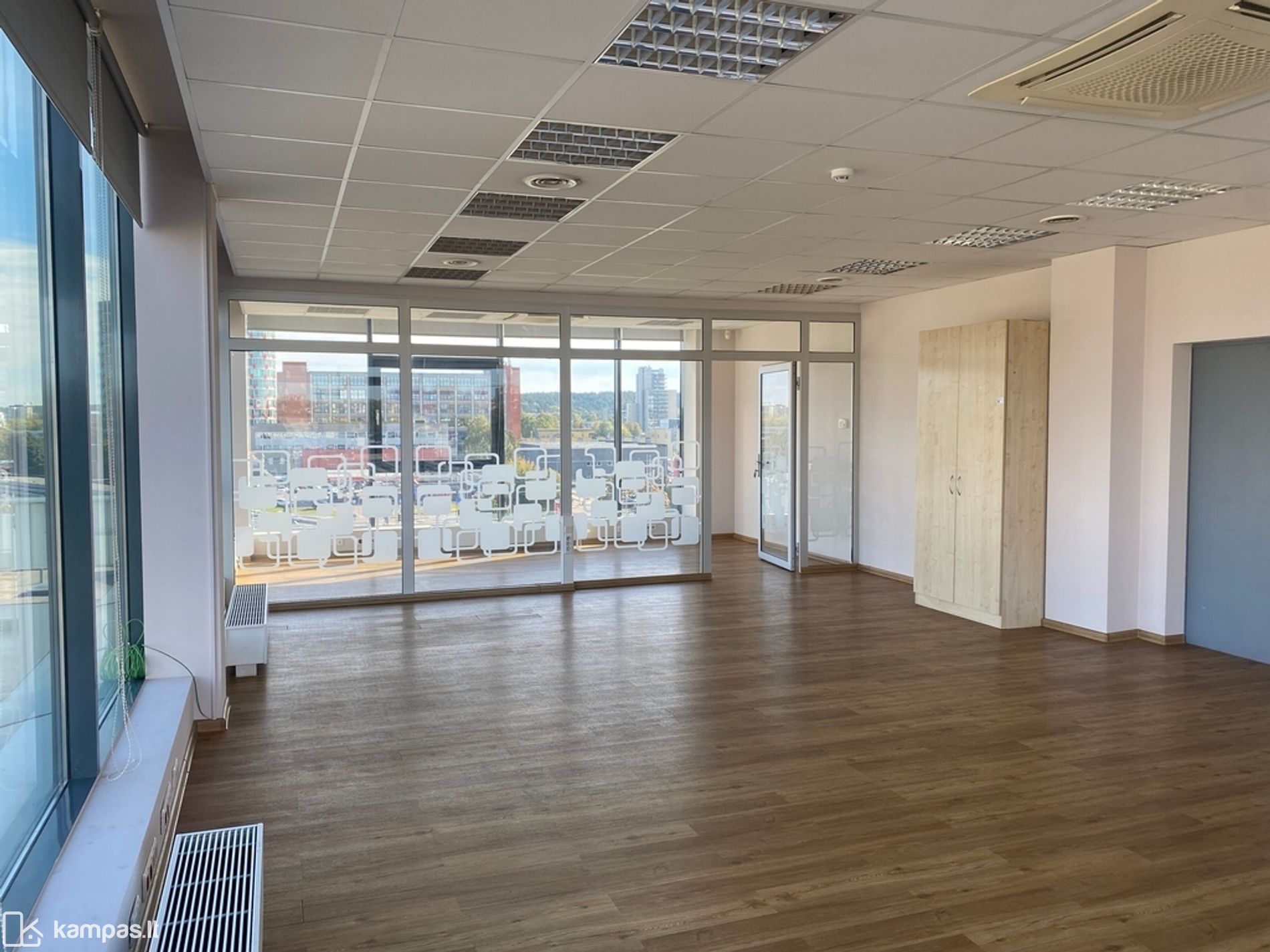 2 erdvės vitrininiai langai trejose pusėse, laminato grindų danga, rekuperacija, kondicionierius, sienos naujai perdažytos