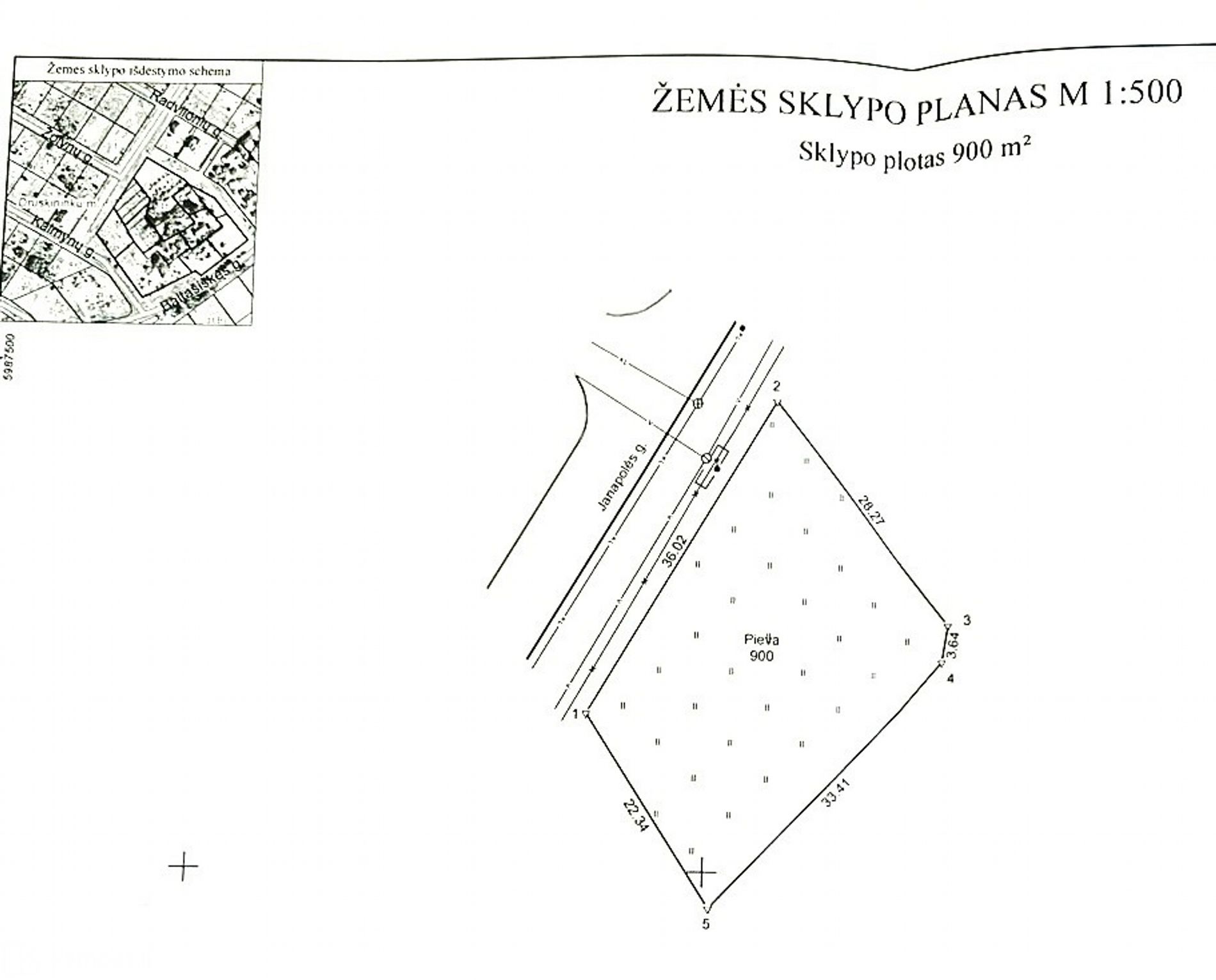 Sklypo forma trapecija 36x22x37x28m. Žemės sklypas suformuotas atliekant kadastrinius matavimus.