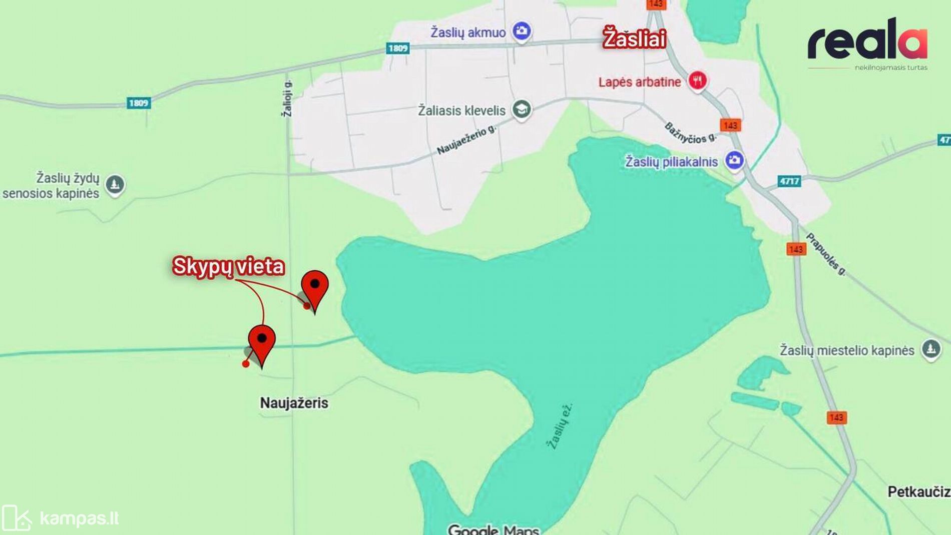 Parduodamas 3,3 ha miškų ūkio paskirties sklypas besiribojantis su Žaslių ežeru, taip pat didelis, beveik 1 ha namų valdos sklypas, kuriame registruoti trys statiniai: gyvenamasis namas, ūkinis pastatas bei garažas.