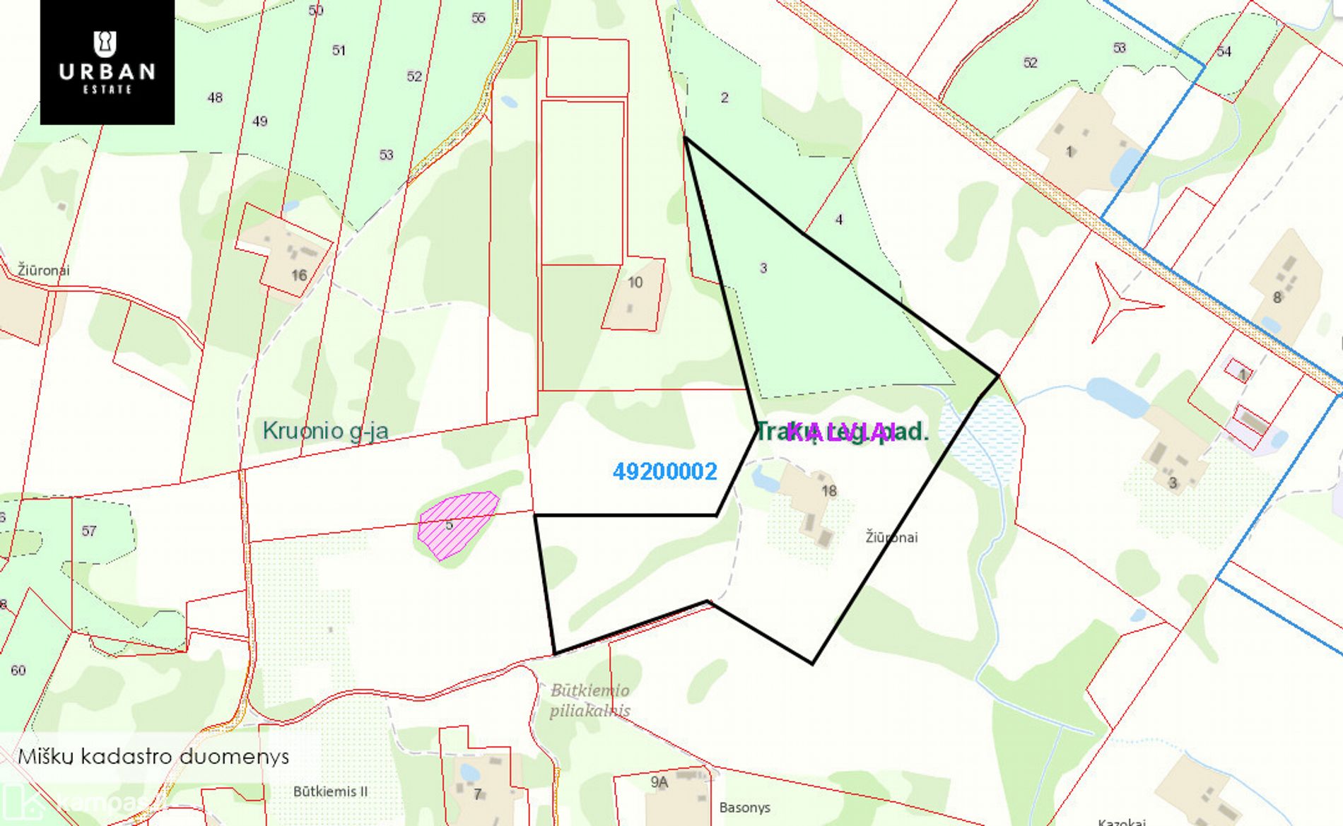 • Miško plotas, įregistruotas Miškų valstybės kadastre - 3.2486 ha;
