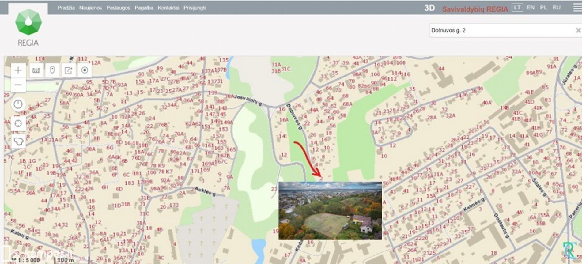 Parduodamas PANORAMINIS namų valdos ŽEMĖS SKLYPAS Nr.1 - 13 arų, Šilainių sen., Dotnuvos g. 2, Kaunas.