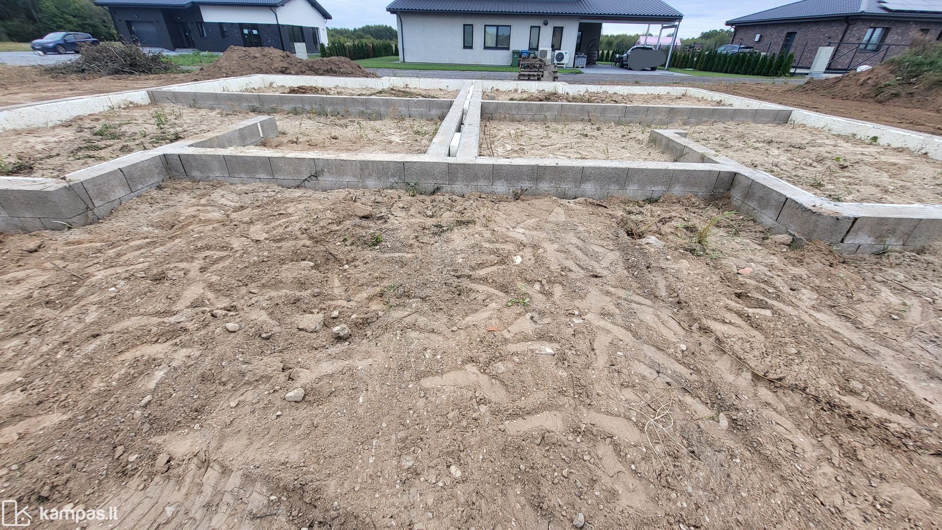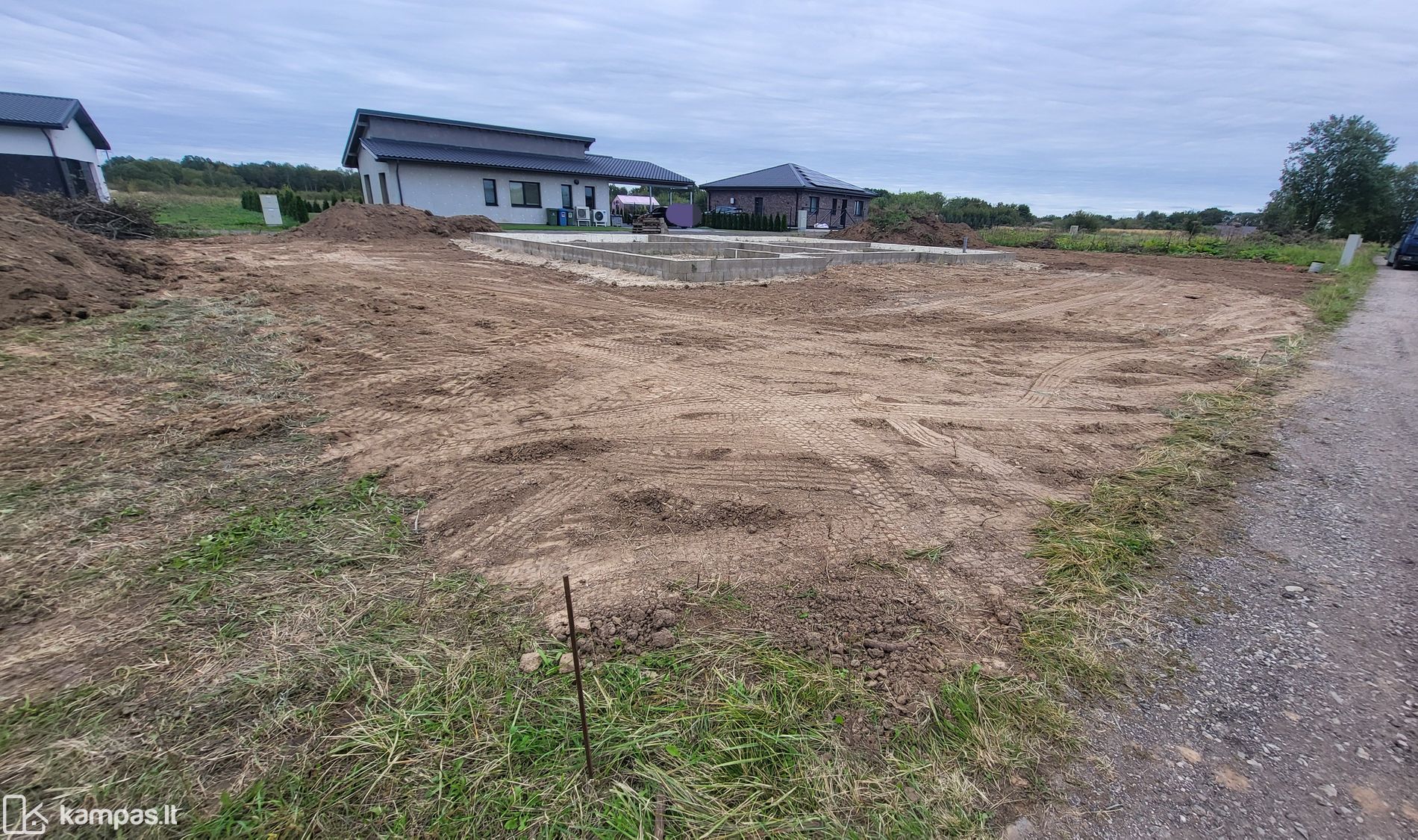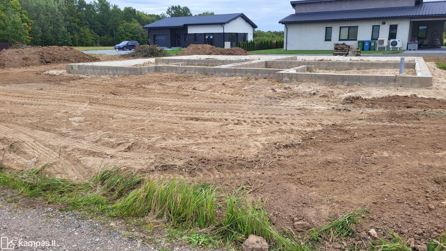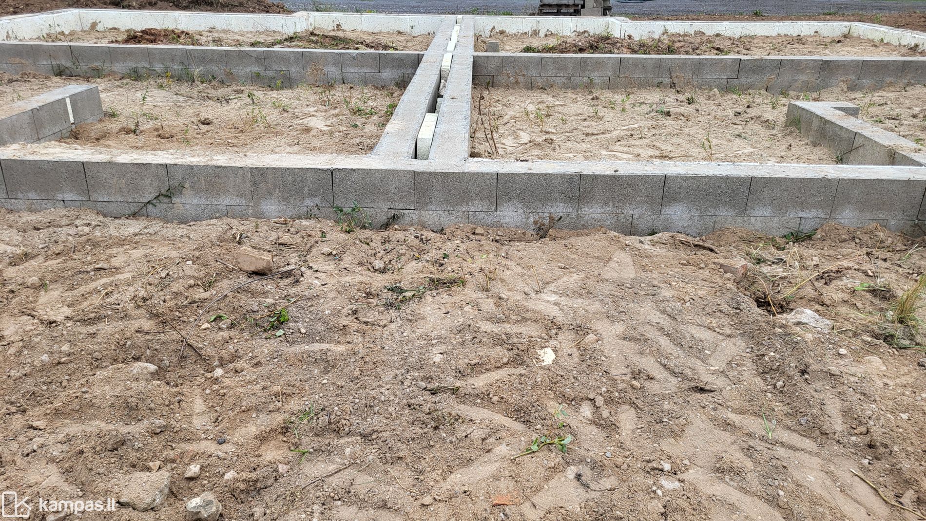 Parduodamas 10 arų sklypas su dvibučio pamatais (2×80 kv.m)