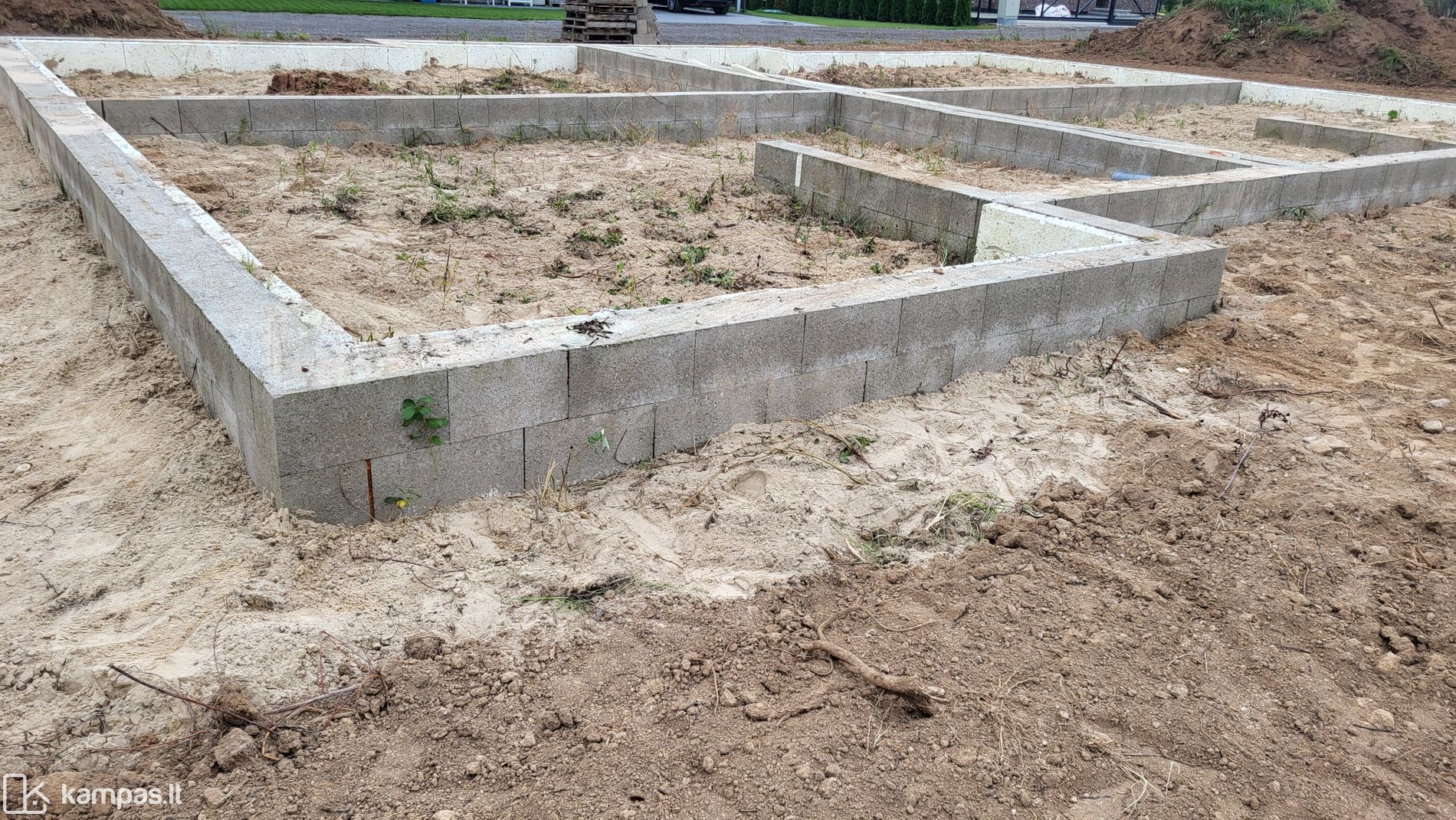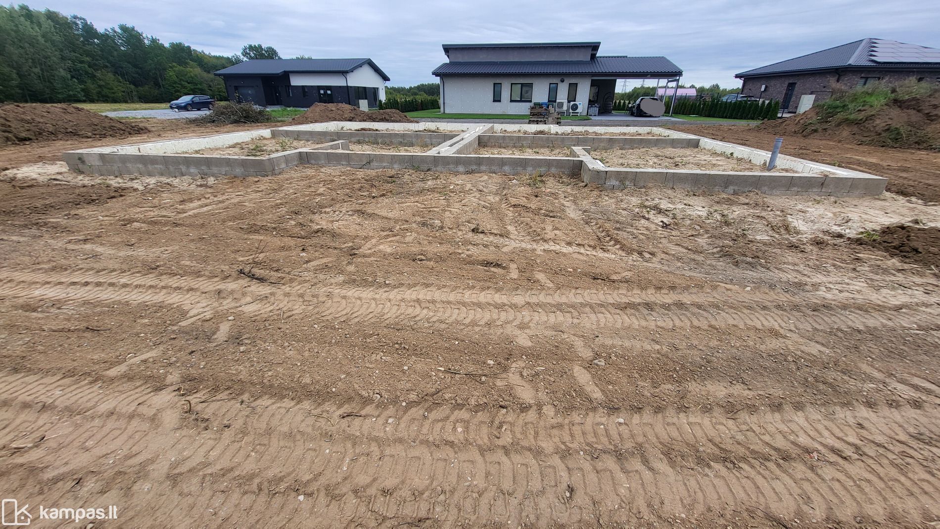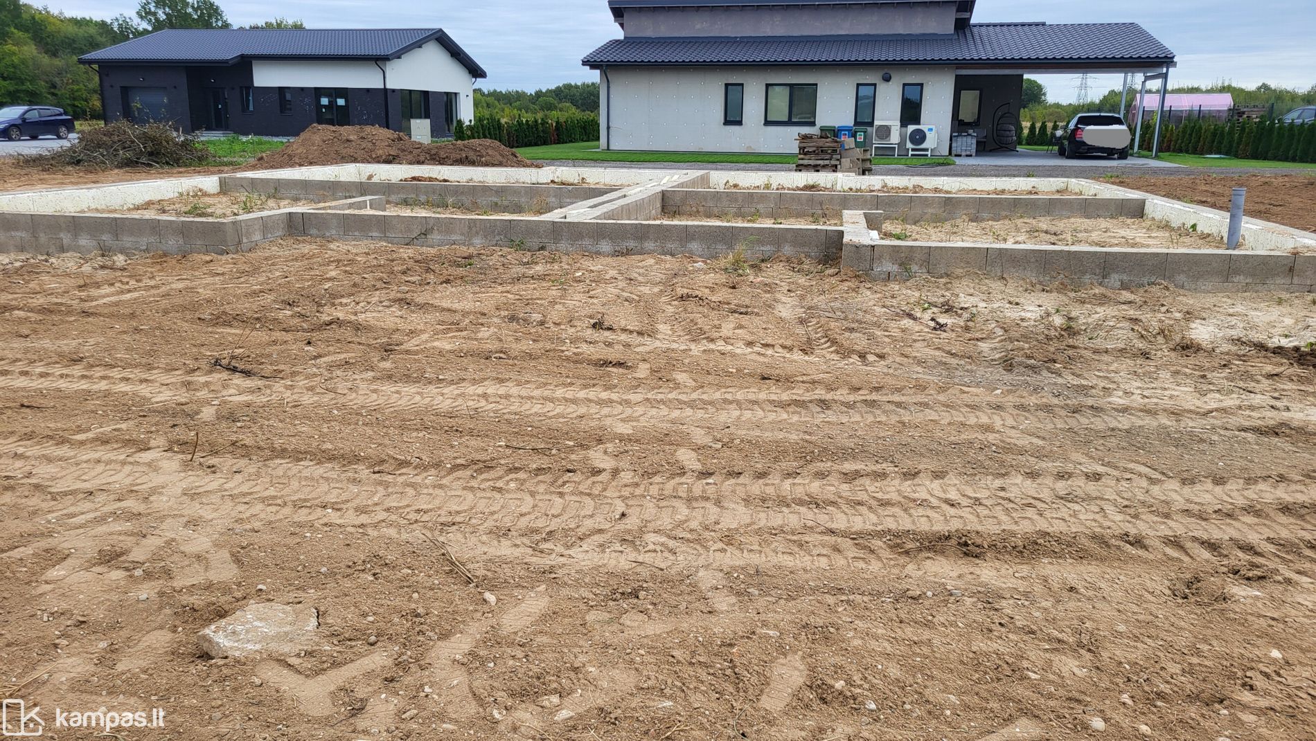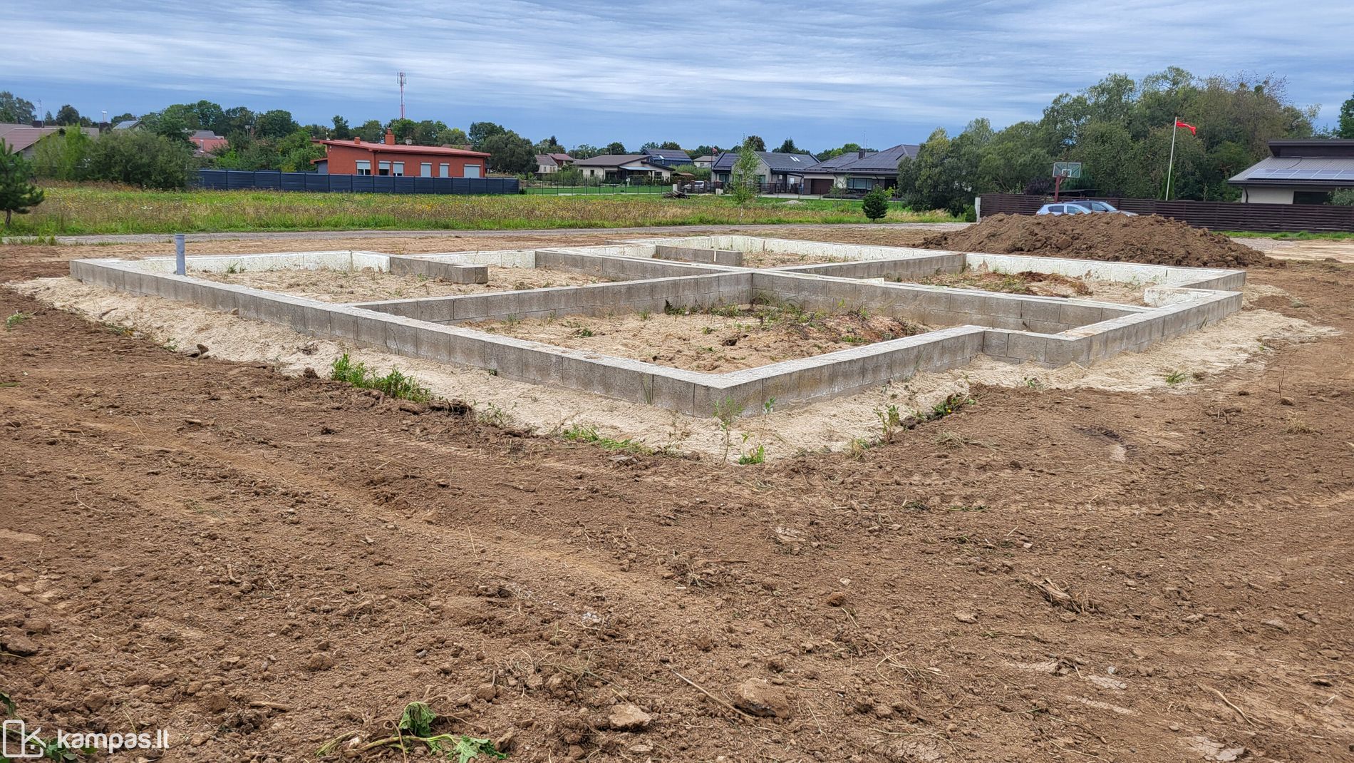 Parduodamas 10 arų sklypas su dvibučio pamatais (2×80 kv.m)