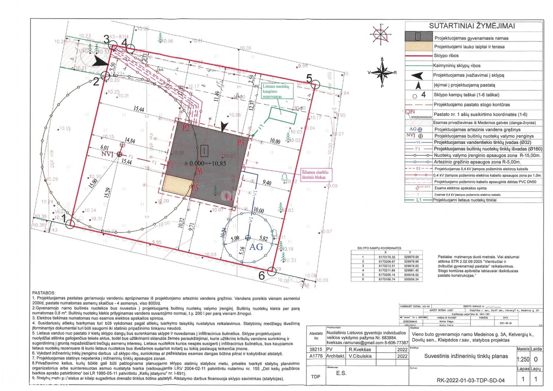 Suprojektuoti individualūs vandens gręžinys ir nuotekų valykla.