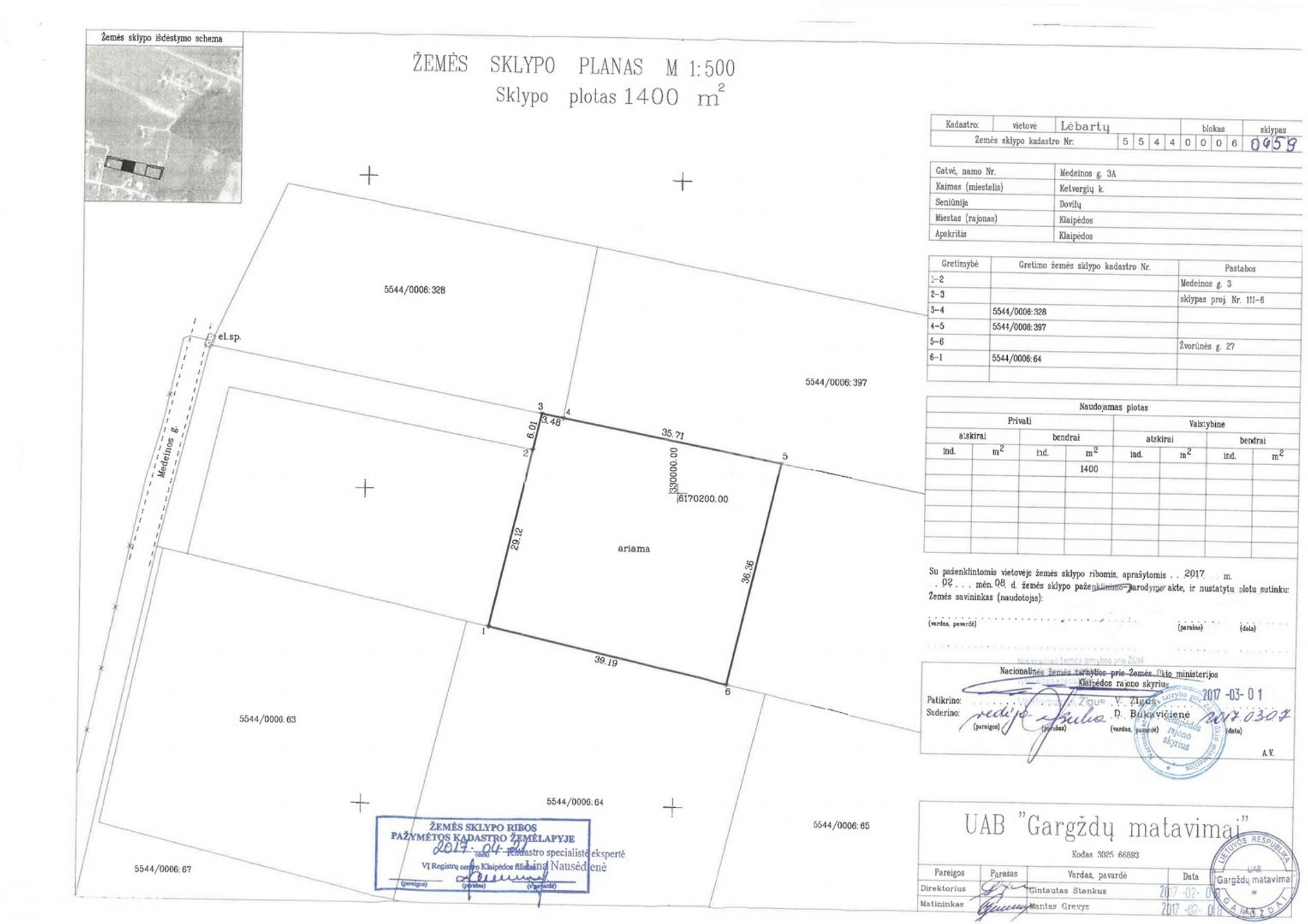 Sklypo kraštinių ilgiai: 29,12 x 35,71 x 36,36 x 39,19 m.