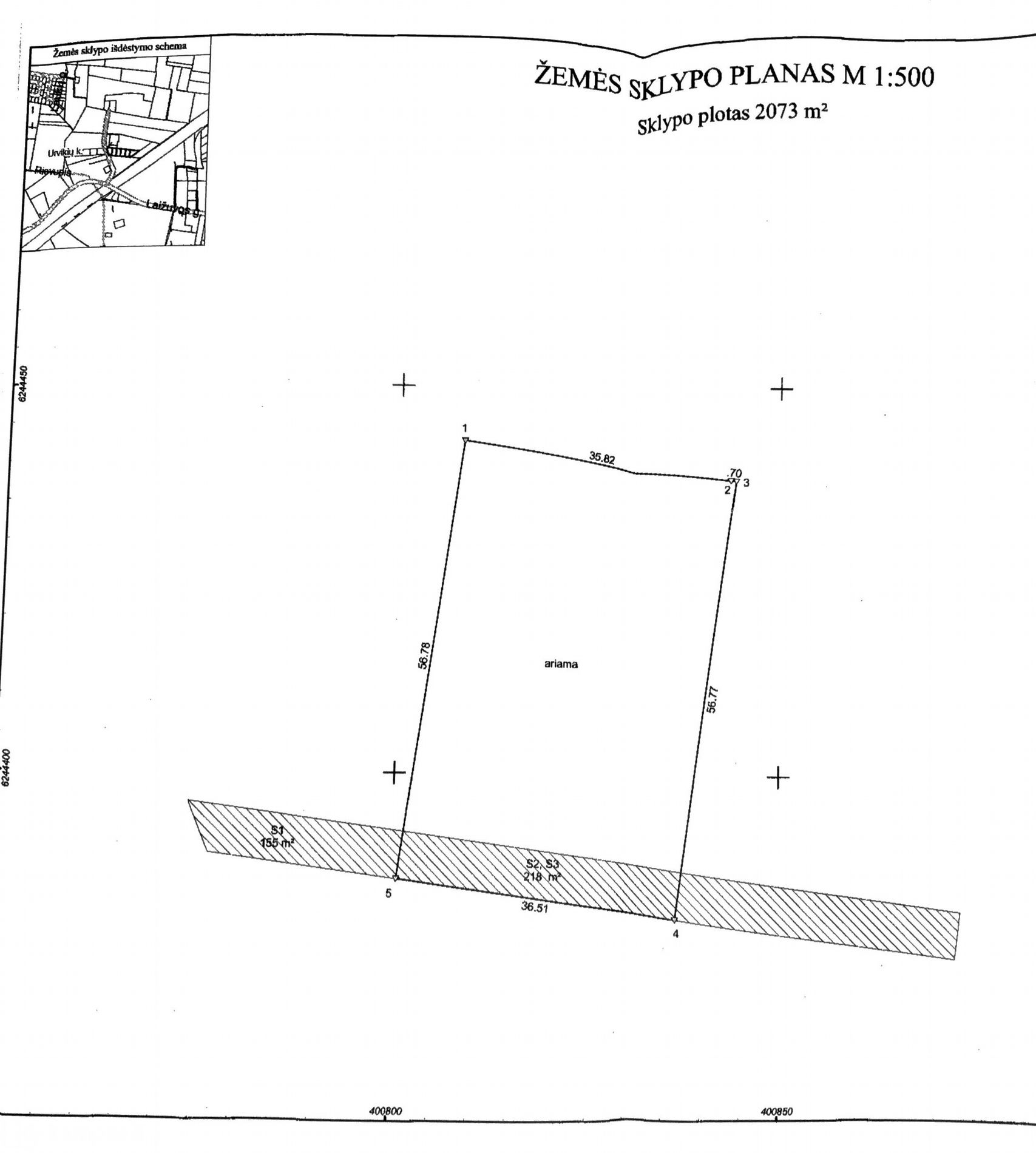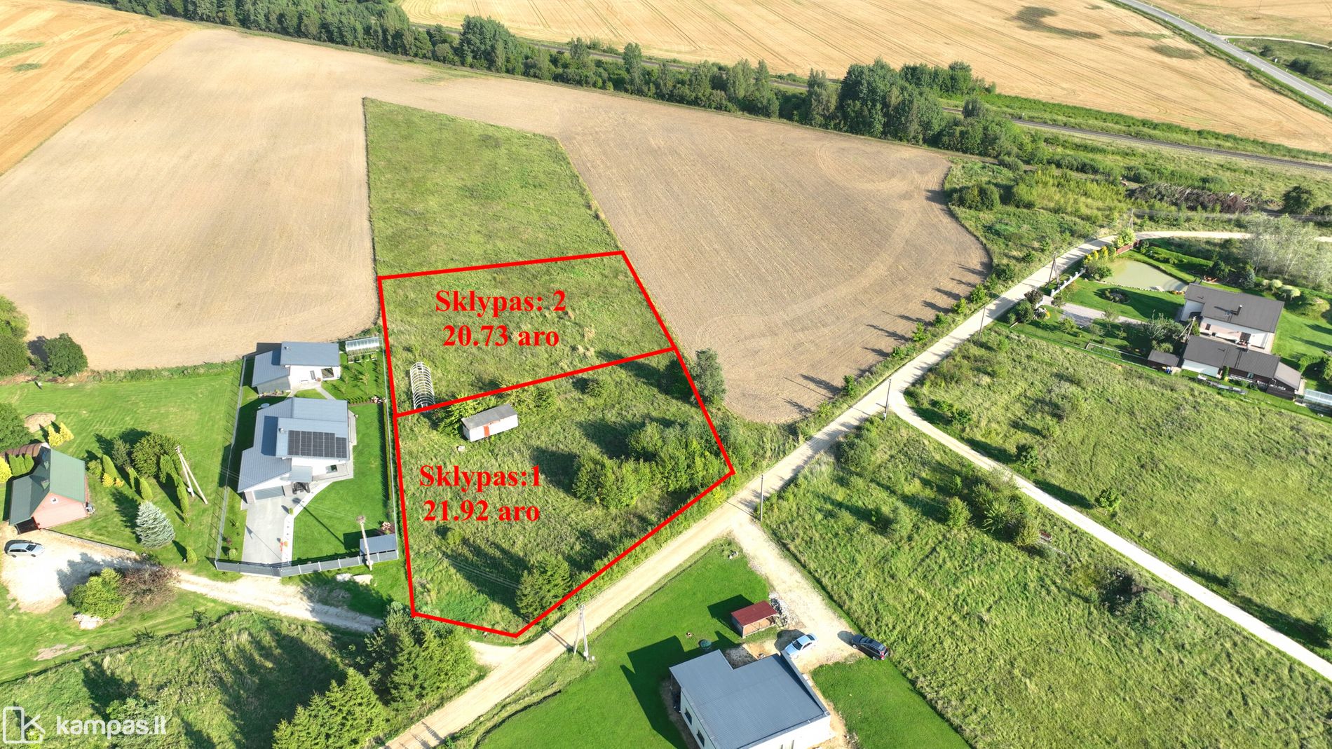 - Sklypų plotai: 20.73 aro ir 21.92 aro;