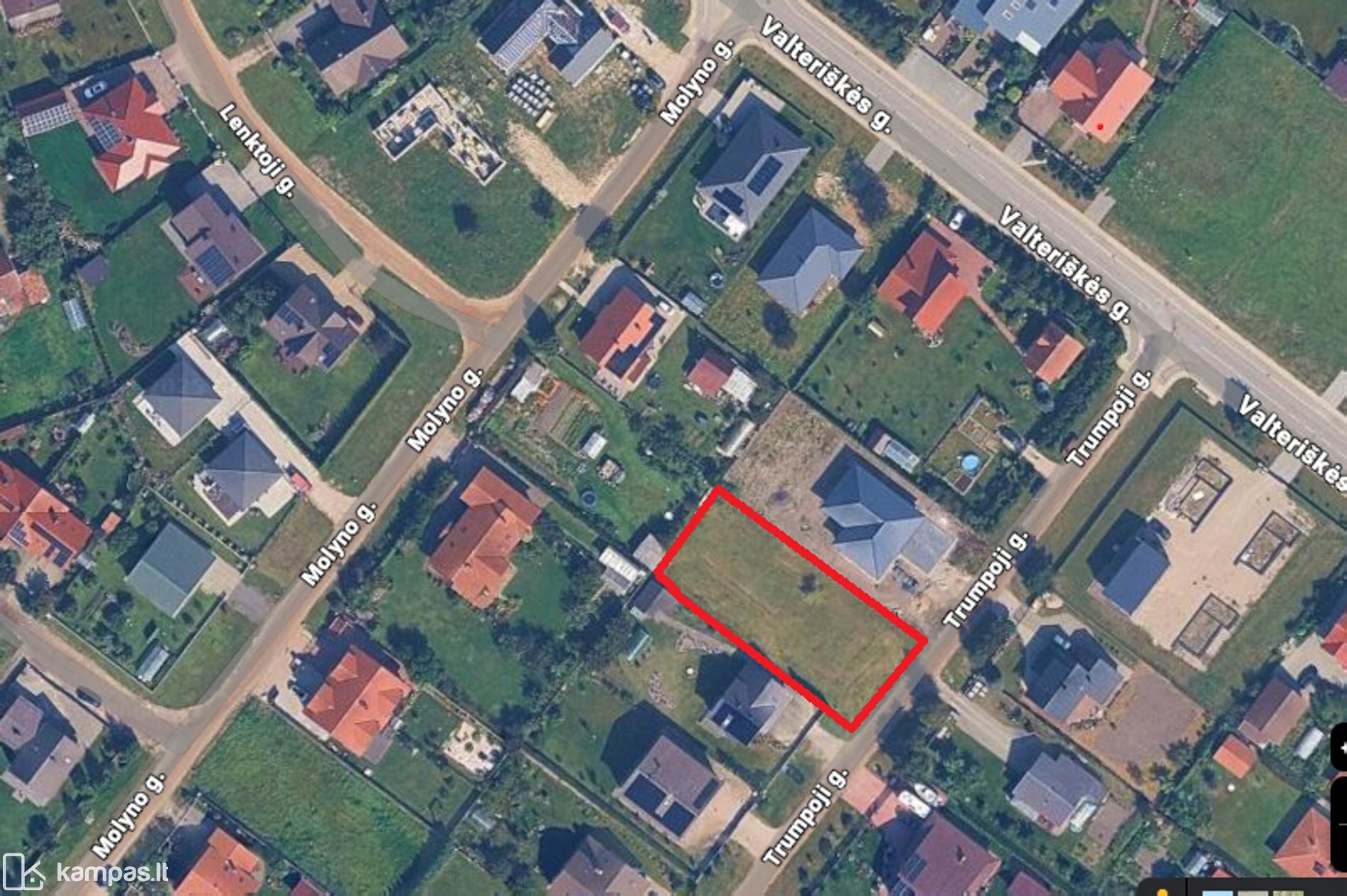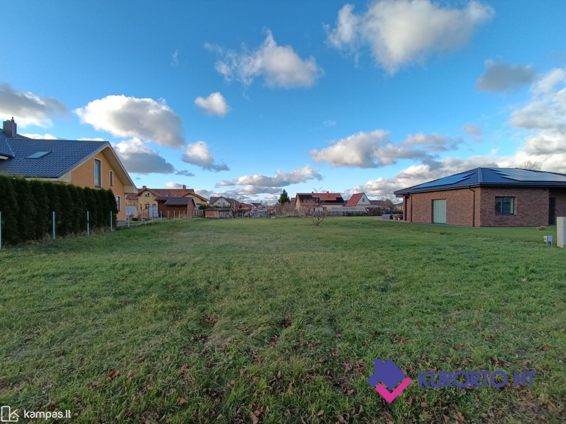 Aplink sklypą jau stovi gyvenamieji namai, susiformavusi rami ir tvarkinga kaimynystė.