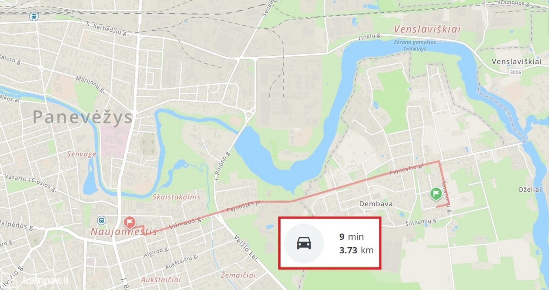Iki Panevėžio miesto centro ~ 3,5 km