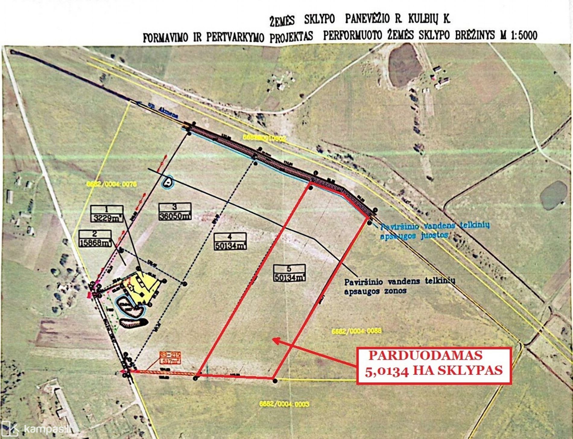 Bendras sklypo plotas 15,54 ha, pagal pasidalinimo projektą numatyta sklypo dalinimo tvarka – parduodama sklypo dalis 5,0134 ha.