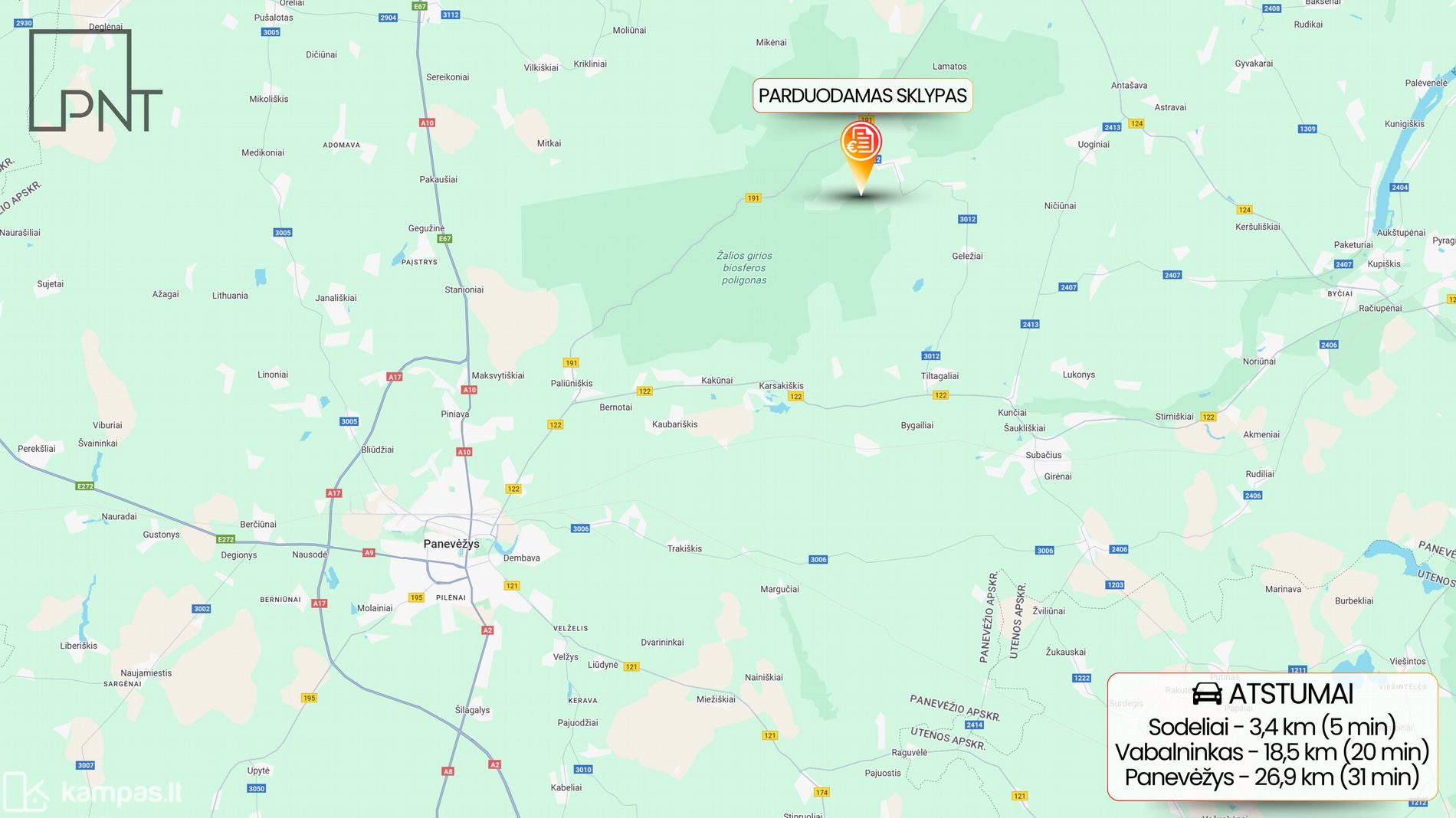 Sklypas yra pačiame Žaliosios girios pakraštyje, tad gamtos ir ramybės netrūksta. Ribojasi su Pyvesos upeliu, o privažiavimas – puikus ištisus metus.