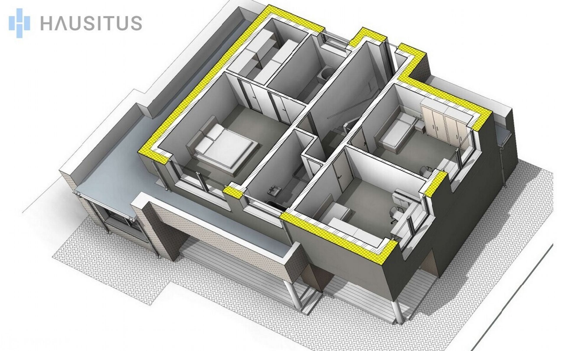– Patogus išplanavimas – 2 miegamieji kambariai, svetainė, virtuvė – valgomasis, tualetas, pagalbinė patalpa, sandėliukas – 1 aukšte; 3 kambariai, drabužinė, 2 vonios kambariai – 2 aukšte;