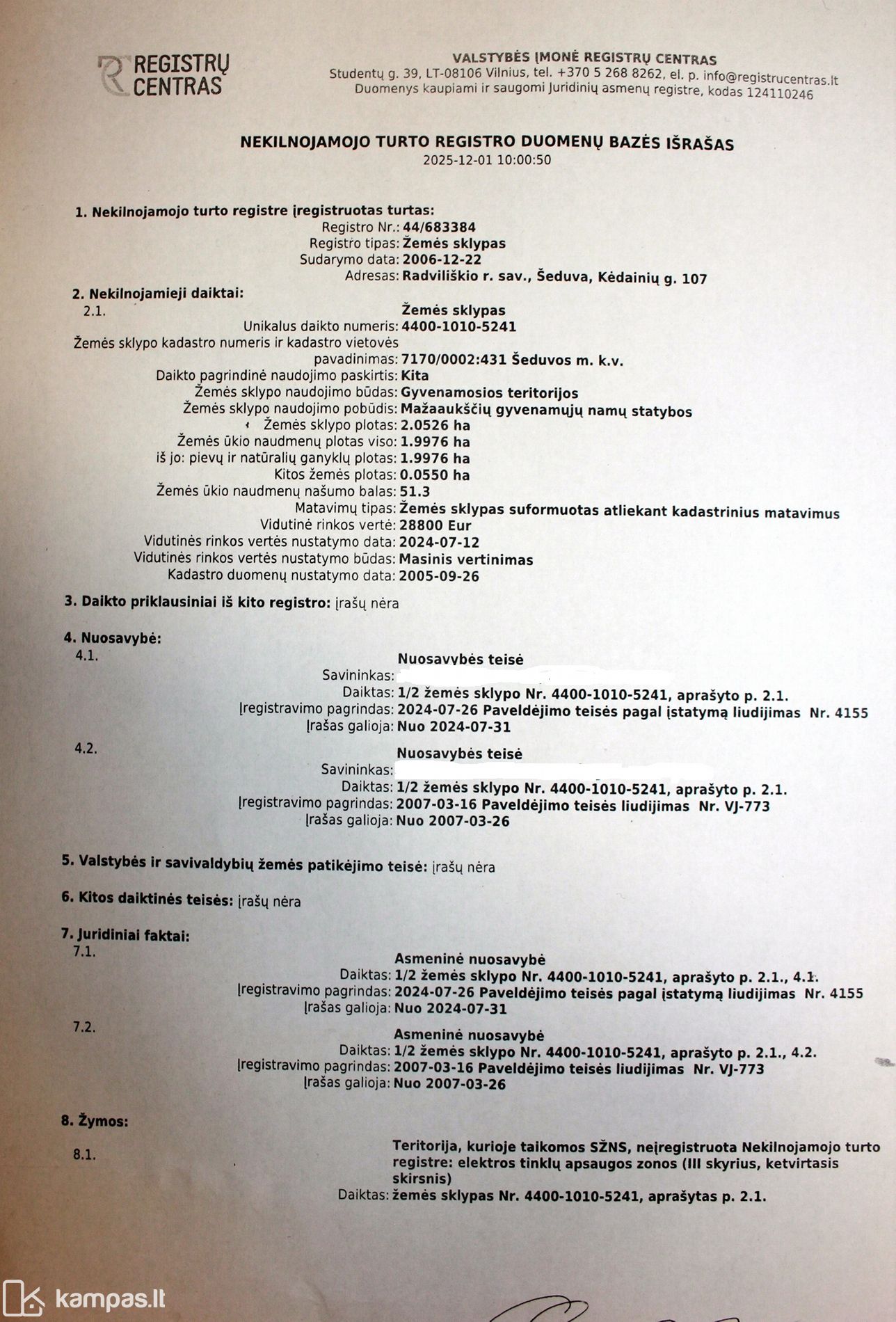 Galima keisti paskyrą, apribojimu nėra. Elektra prie sklypo. Dokumentai tvarkingi.