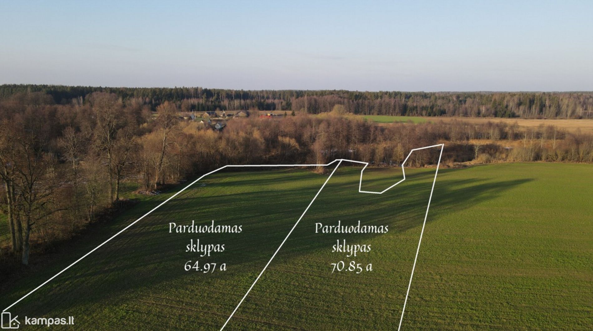 • Sklypų plotai: 64,97 a ir 70,85 a;