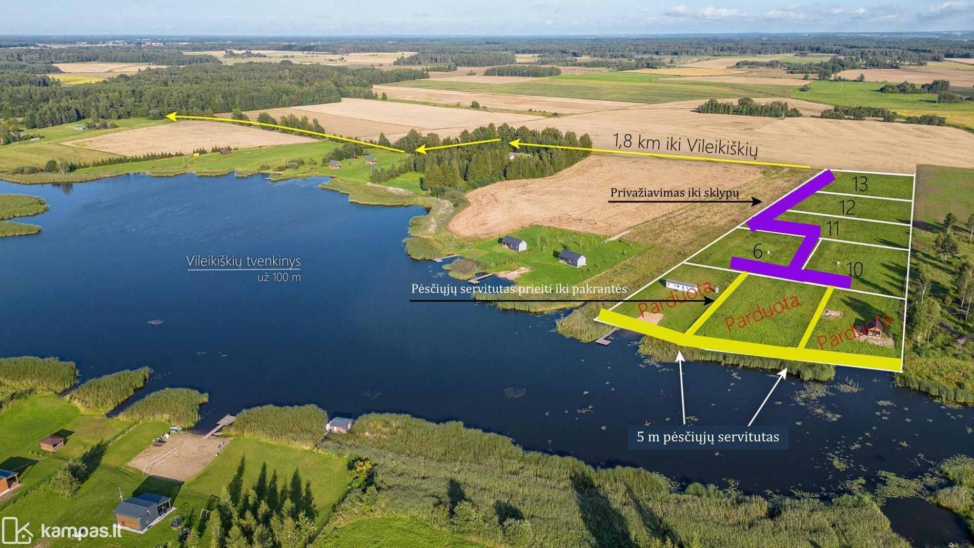 Širvintų r. sav., Musninkų sen., Plotų vs. parduodami 20,81 a - 26,56 a ploto žemės sklypai. Atlikti kadastriniai matavimai, pravažiavimui tarp sklypų nustatyti servitutiniai keliai. Pėsčiųjų servitutas iki tvenkinio visų sklypų savininkams leidžia lengvai pasiekti pakrantę. Pakrantėje numatytas 5 m pėsčiųjų servitutas, kas suteikia galimybę visiems sklypų masyvo savininkams naudotis tvenkinio teikiamais malonumais. Šie sklypai, esantys vos 100 metrų nuo Vileikiškių tvenkinio, leis mėgautis gamtos harmonija, tuo pačiu nenutolstant nuo Vileikiškių gyvenvietėje esančios infrastruktūros. Tai puiki vieta norintiems pabėgti nuo miesto šurmulio, bet išlikti patogiai pasiekiamose gyvenvietėse.