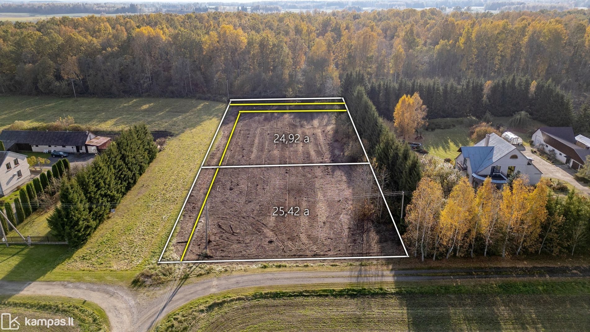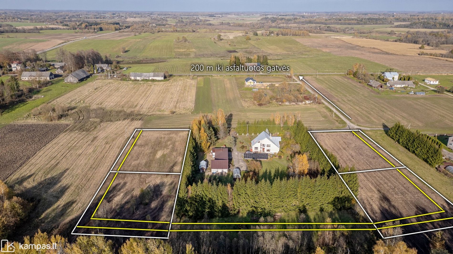 - Privažiavimas asfaltuotu keliu, 20 m. geru žvyrkeliu ir servitutiniu keliu tarp sklypų;