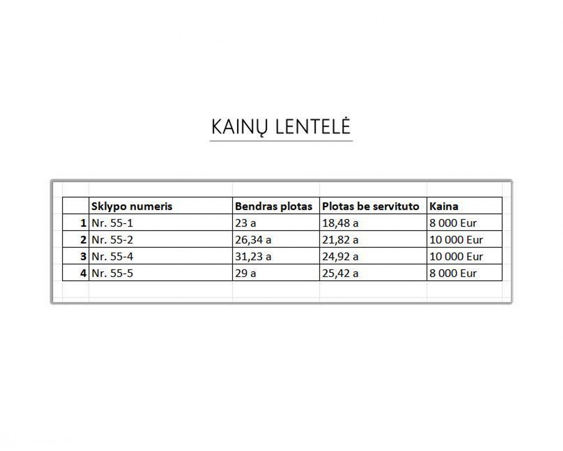 - Sklypų plotai: nuo 23 iki 31,23 aro;