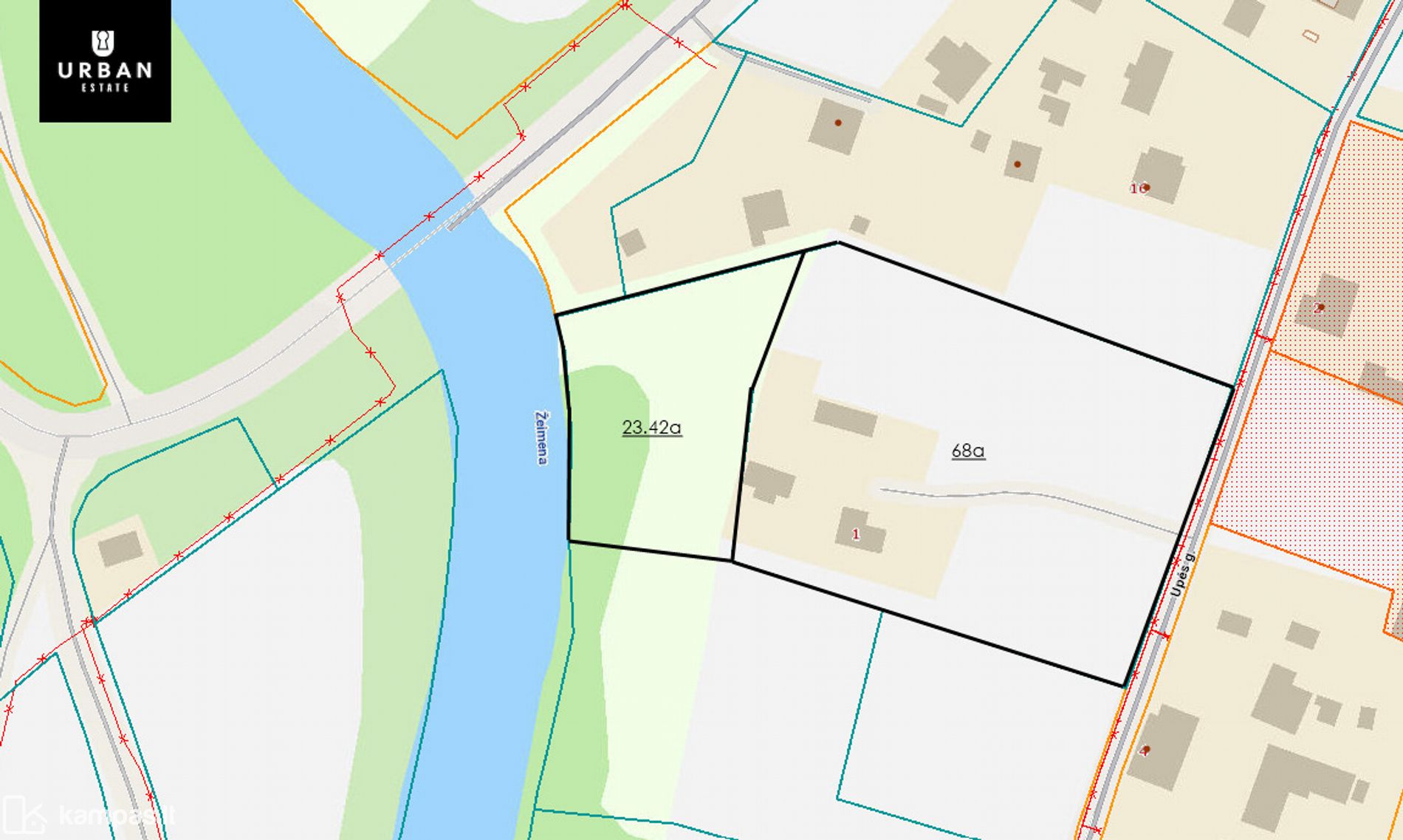 - 23.41 arų sklypas ribojasi su Žeimenos upe, turi 50 metrų jos pakrantės ir yra nuožulnus.