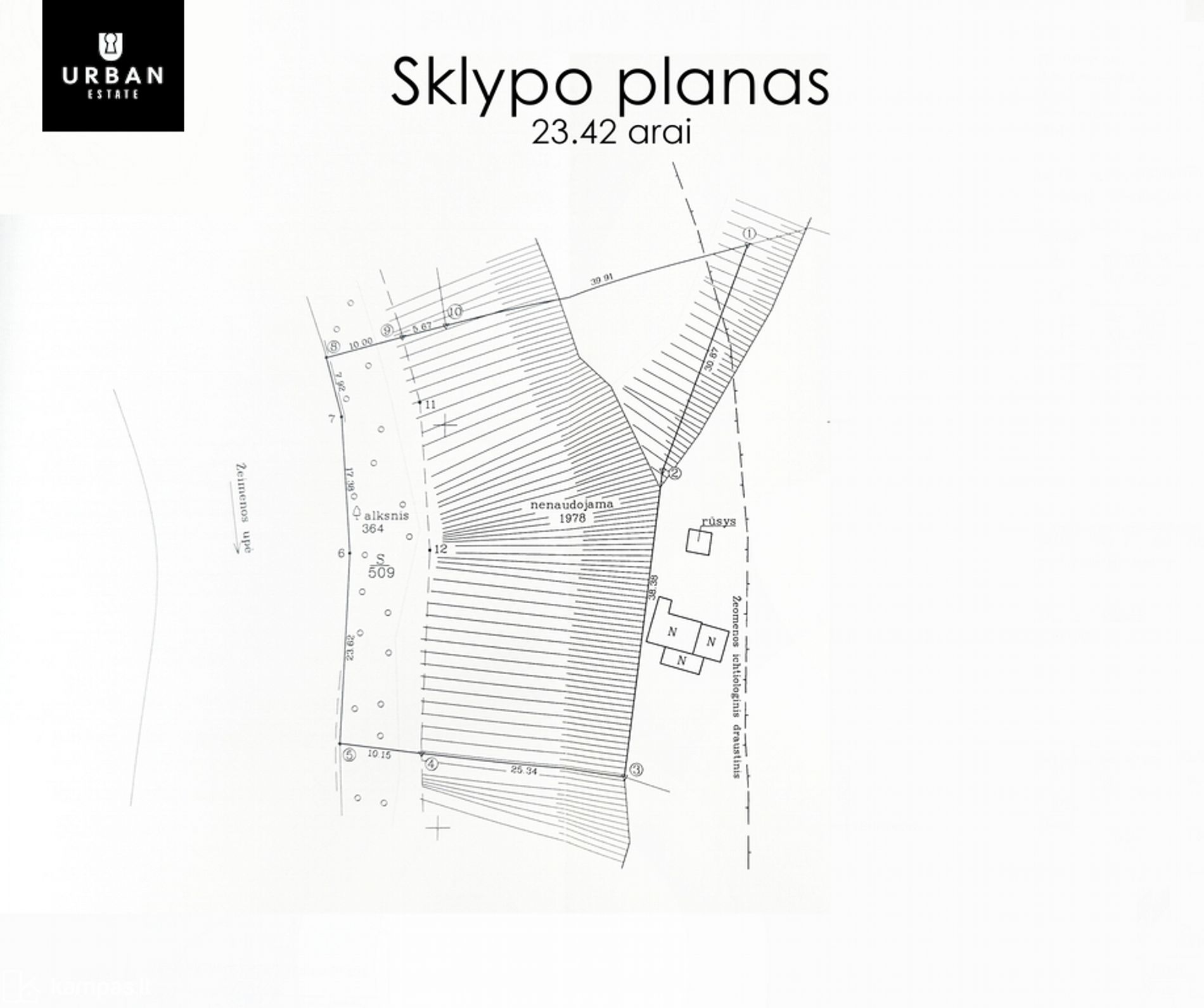 Sklypų plotai - 23.42 arai ir 68 arai;