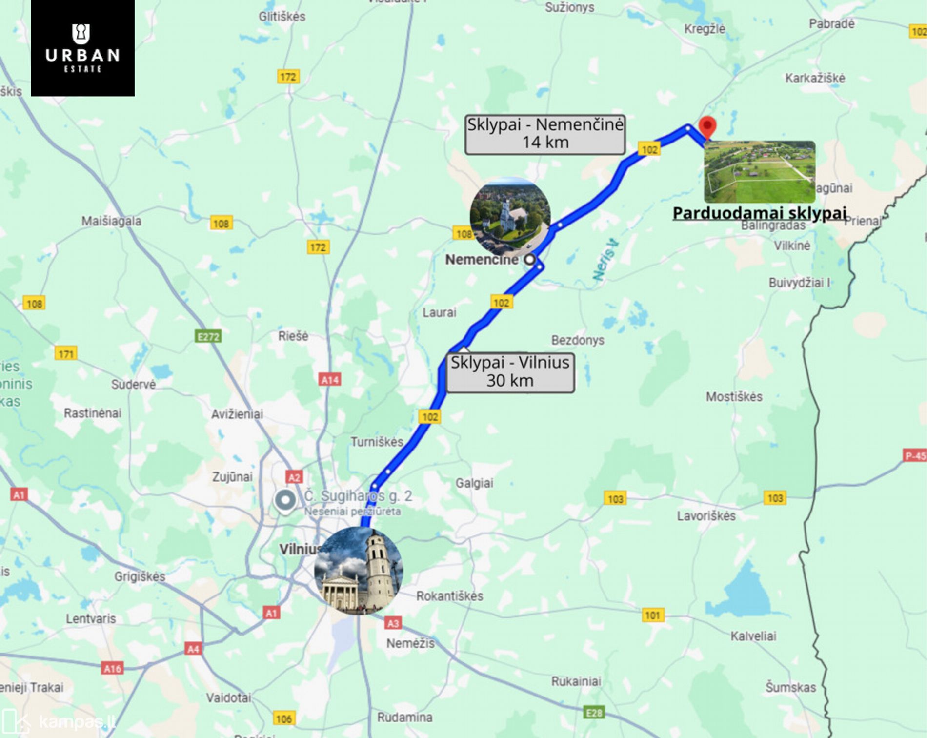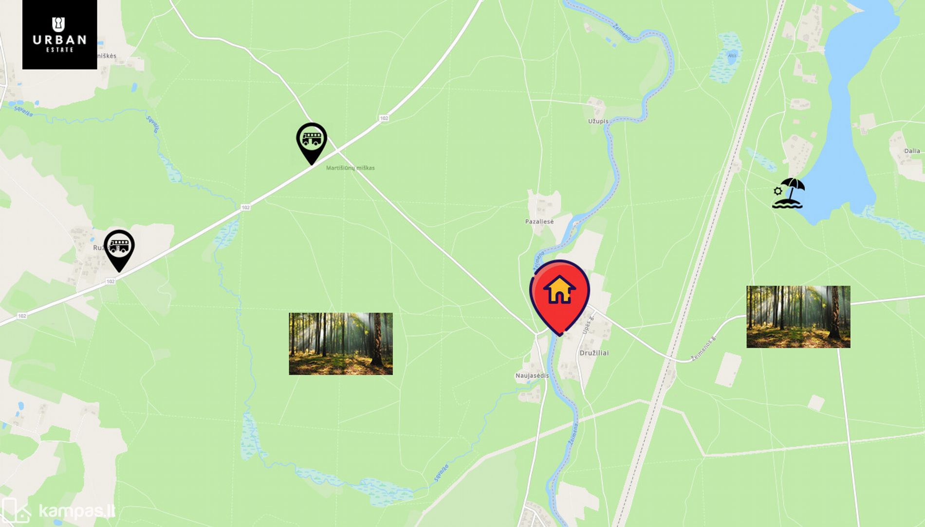- Nors įsikursite ramioje aplinkoje, tačiau netruksite pasiekti reikalingų objektų. Už kilometro kursuoja viešasis transportas, iki Nemenčinės miesto 14 km, kuriame rasite mokymo bei gydymo įstaigas, prekybos centrus. O iki Vilniaus miesto - 30 km.