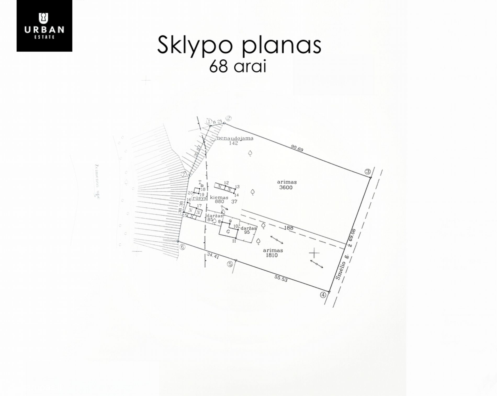 - 68 arų sklypas lygaus reljefo, turi griaunamų arba renovuojamų statinių: gyvenamąjį namą ir ūkinius pastatus.
